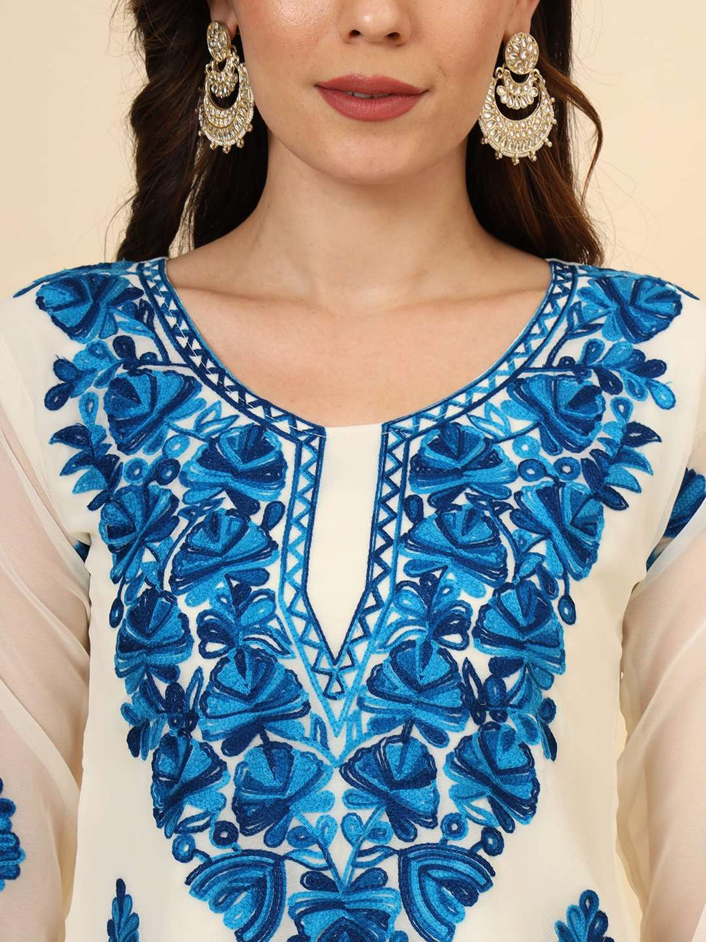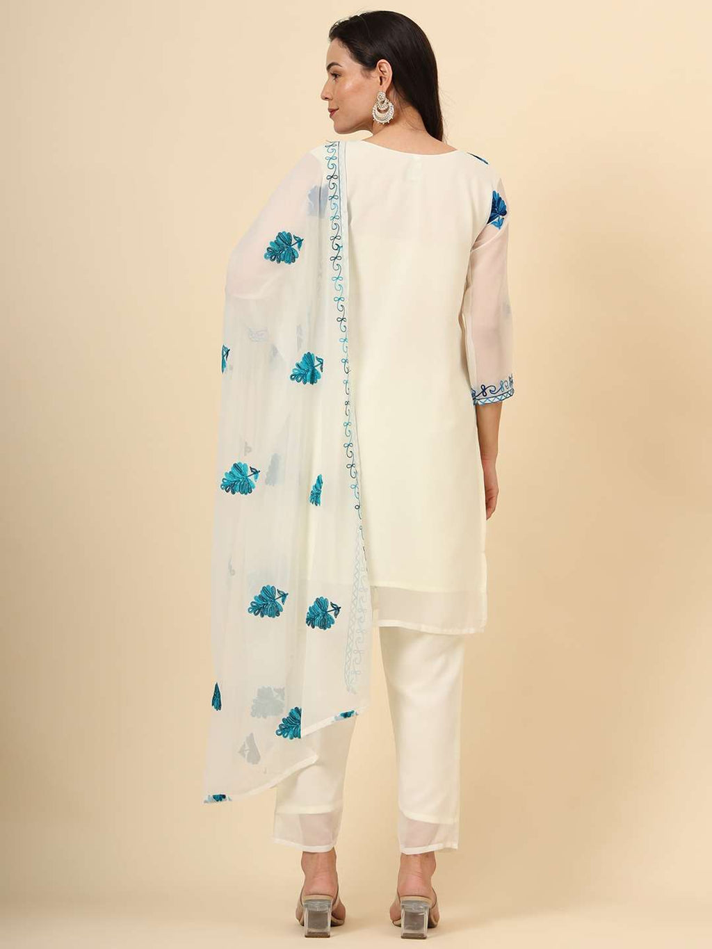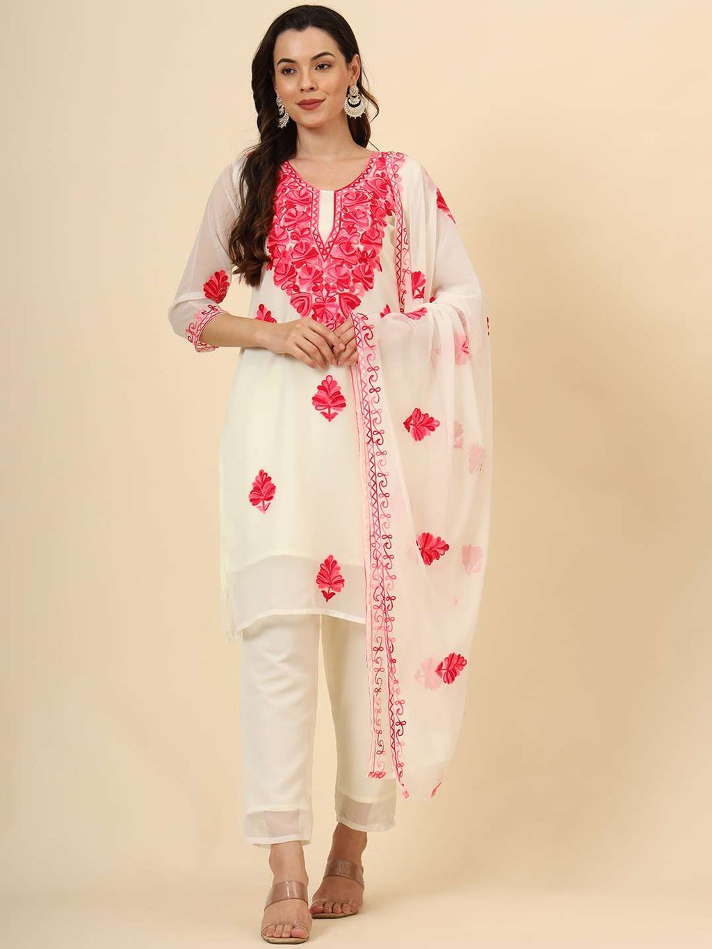 Rajlaxmi Lucknowi Touch Georgette Kurti Pant Dupatta Set