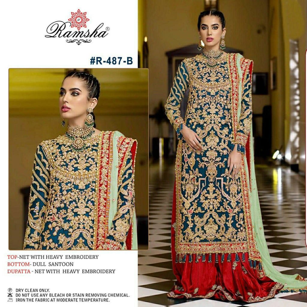 Ramsha R 487 B Net With Heavy Embroidery Pakistani Style Wedding Wear Salwar Kameez