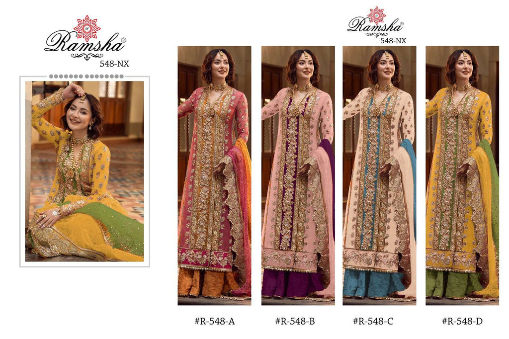 Ramsha R 548 Nx Organza Embroidery Heavy Designer Party Wear Unstitched Salwar Suit
