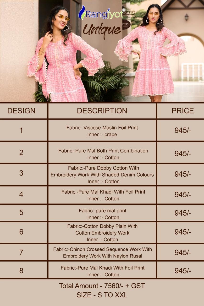 Rangjyot Unique Vol 1 Viscose With Fancy Work Stylish Designer Party Wear Short Western Top