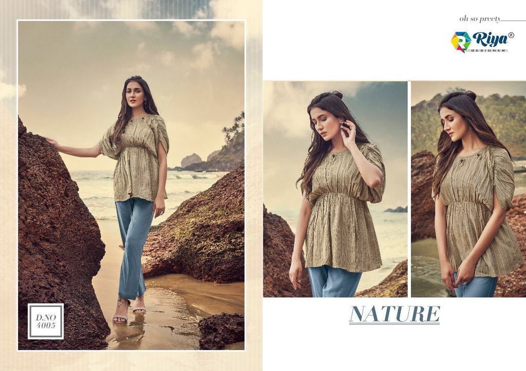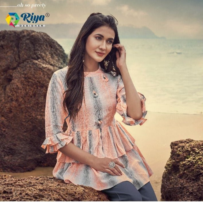 Riya Designer Western Vol 4 Handloom Cotton Fancy Top Type Kurtis With Stripes