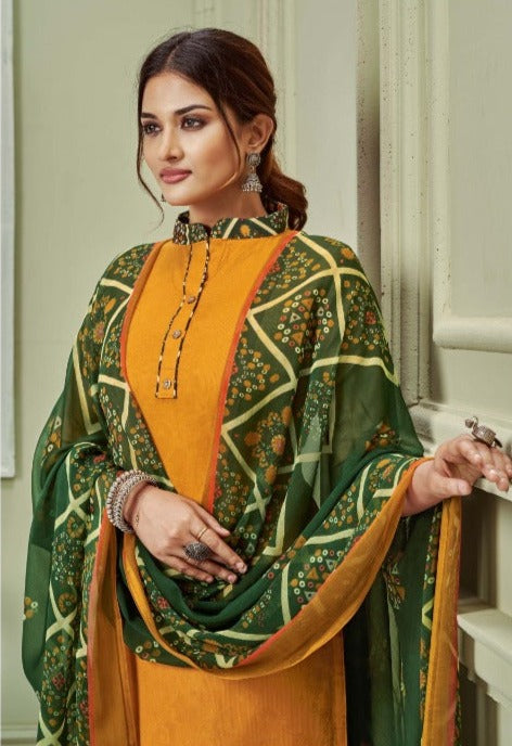 Fabric Details : Top: 100% Premium Soft Jam Cotton Jaquard. (2.50 mtrs) Dupatta: Pure Nazneen Chiffon. (2.30 mtr) Bottom: Soft Cotton Printed Salwar. (3 mtrs apx) |