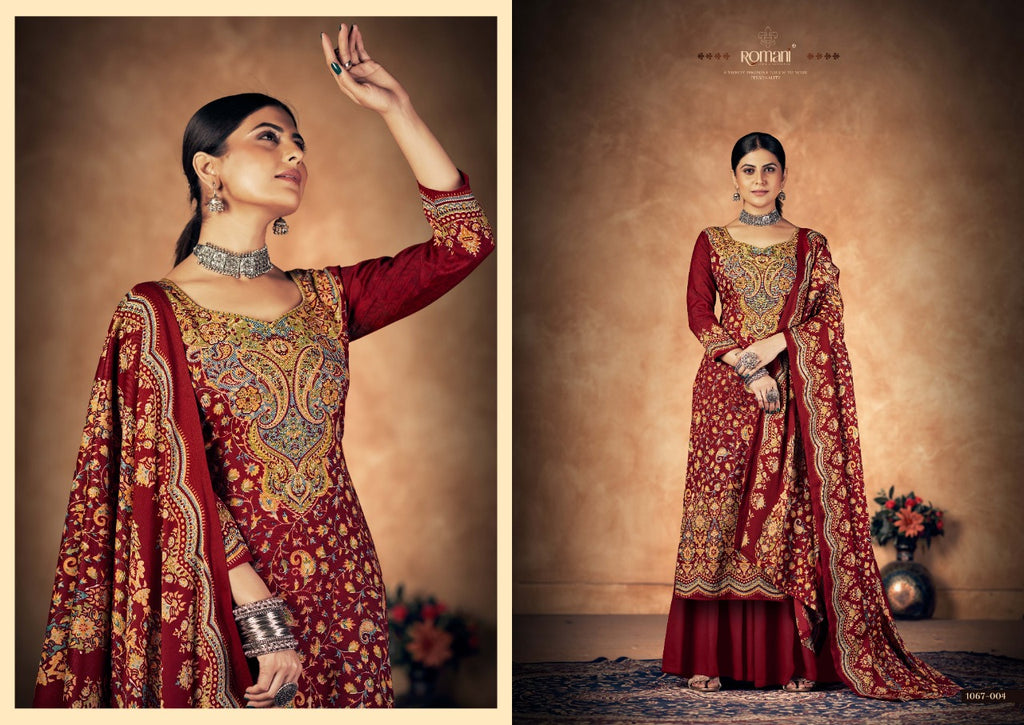 Romani Kashmiri Kali Pashmina With Printed Work Stylish Designer Attractive Look Salwar Kameez