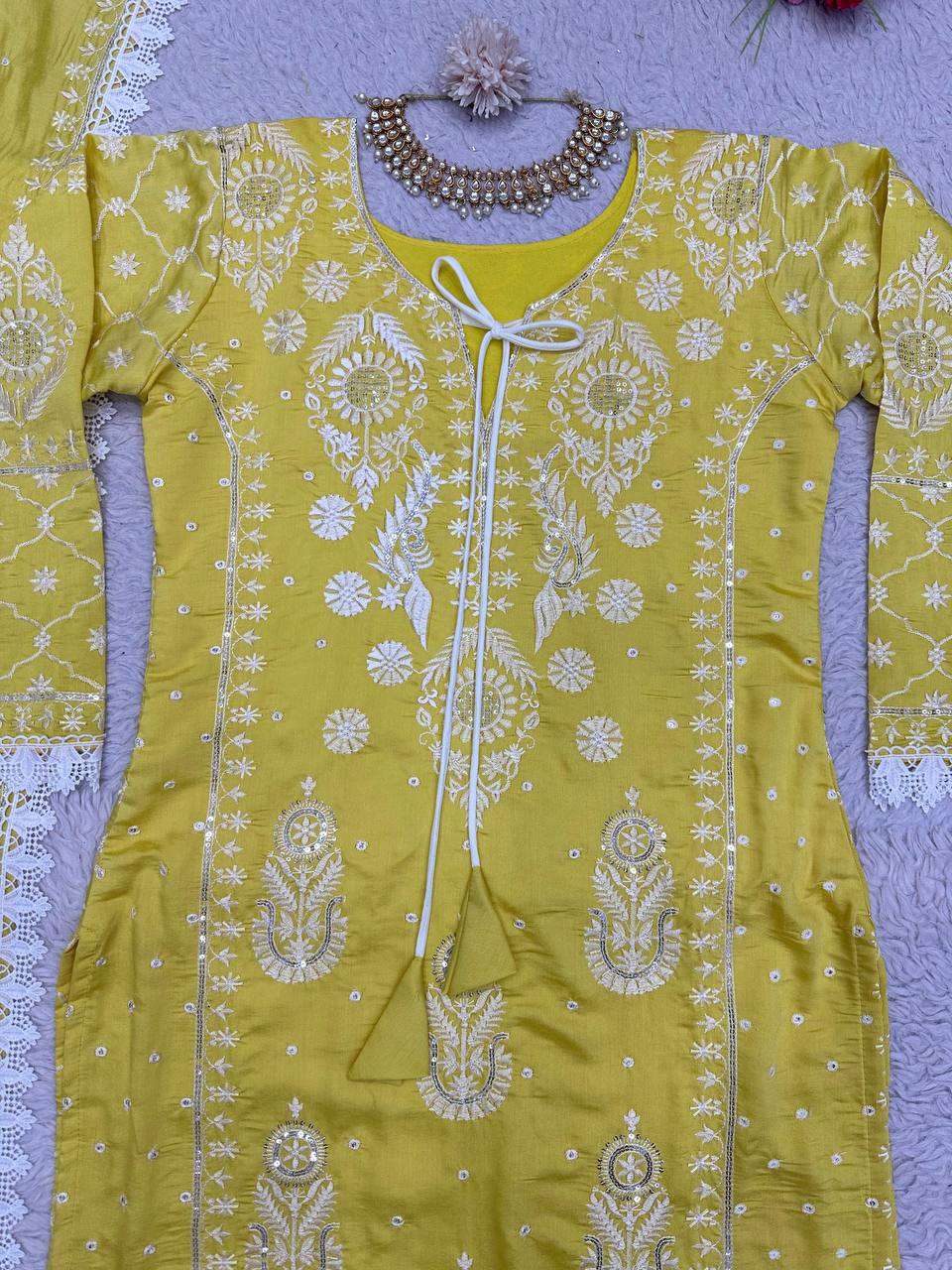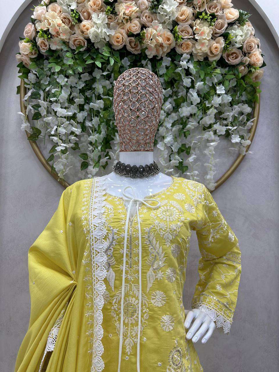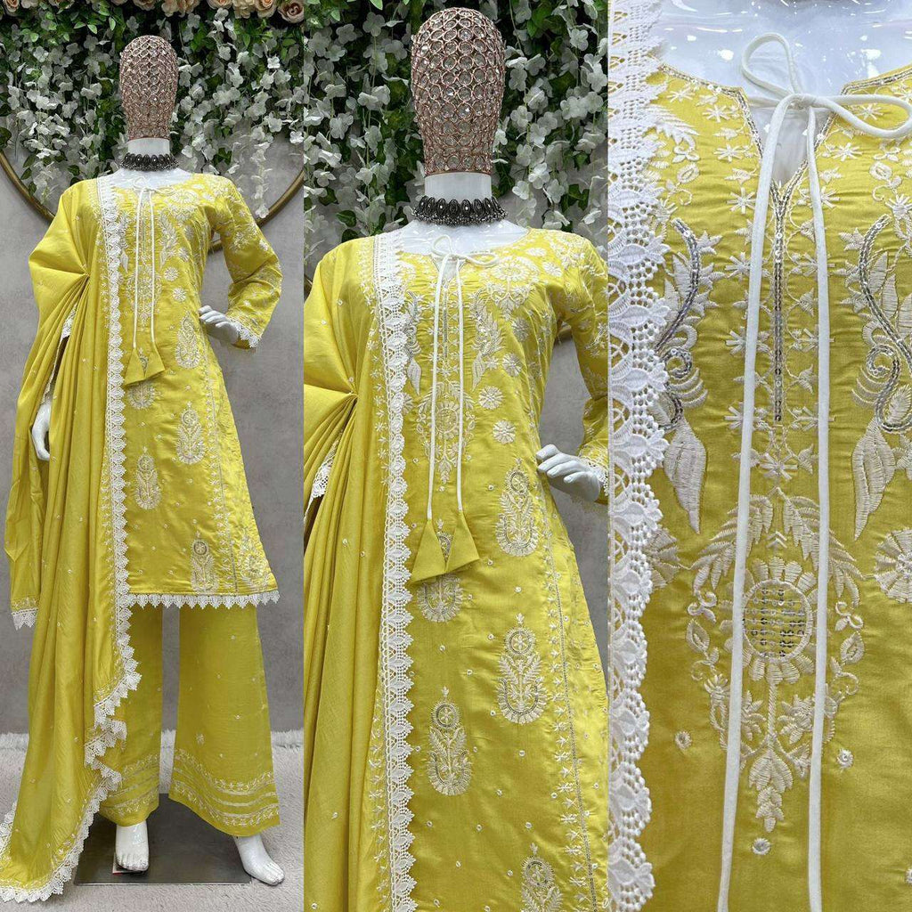 *Top* *Fabric* : Maslin Silk *Inner* : Micro *Work*. : Thread With Sequnce With Fancy Gpo Lace Broder *Stich*. : *M(38), L(40), Xl(42)* *Pent* *Fabric* :- Maslin Silk *Work*. :- Thread *Stich* :- Full Stich Upto 42 With Elastic *Dupata* *Fabric* : Maslin Silk *Work* : Thread With Fourside Gpo Lace Broder |