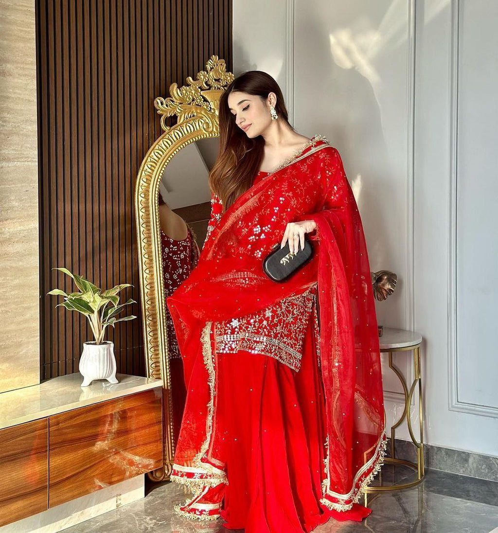 Top *Fabric* : Foux gorgette *Sharara* *Fabrics* : foux gorgette *Dupata* *Fabric*. :- Foux Gorgette *Weight* :- *1kg* |