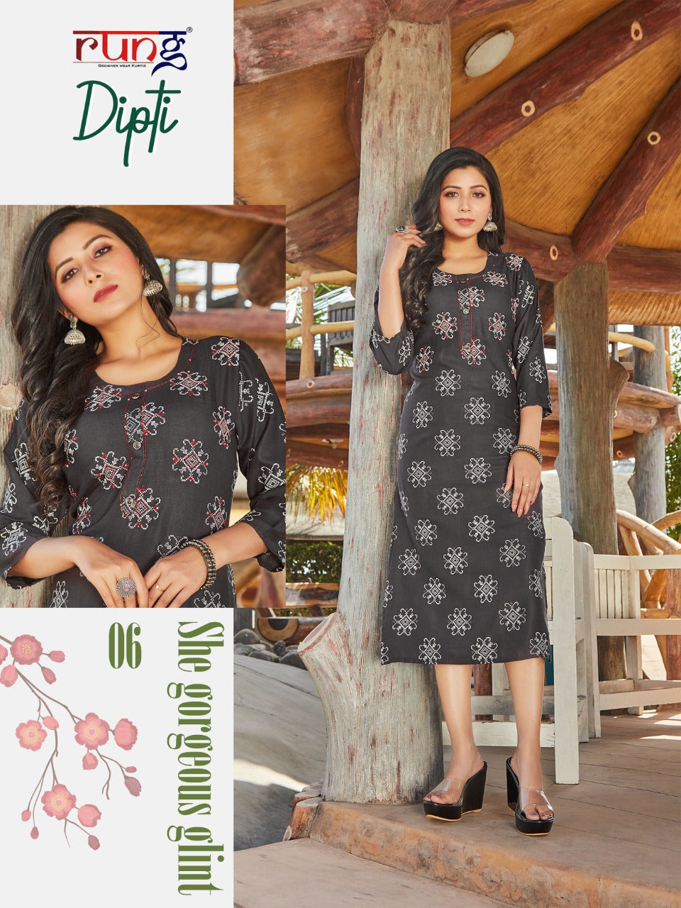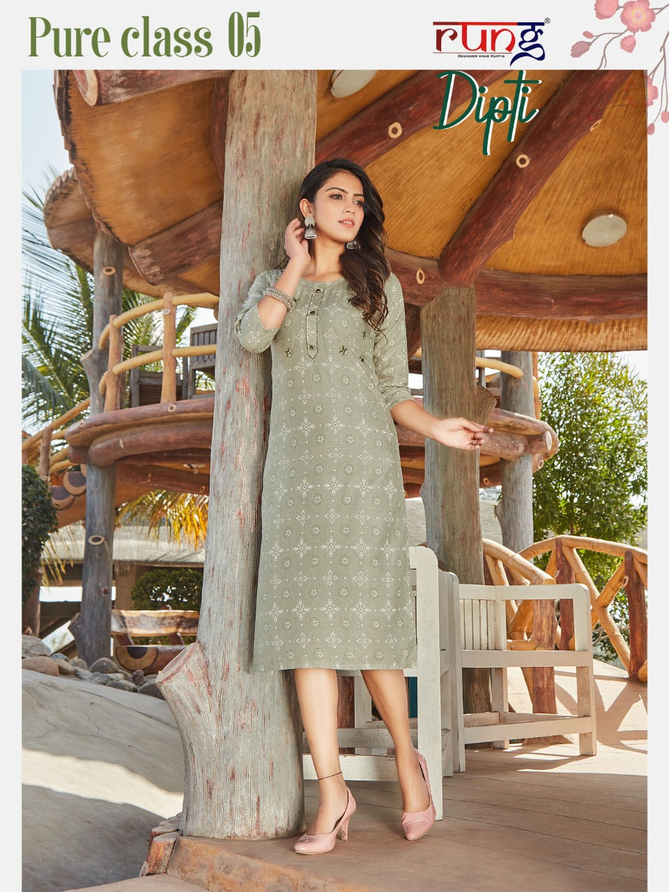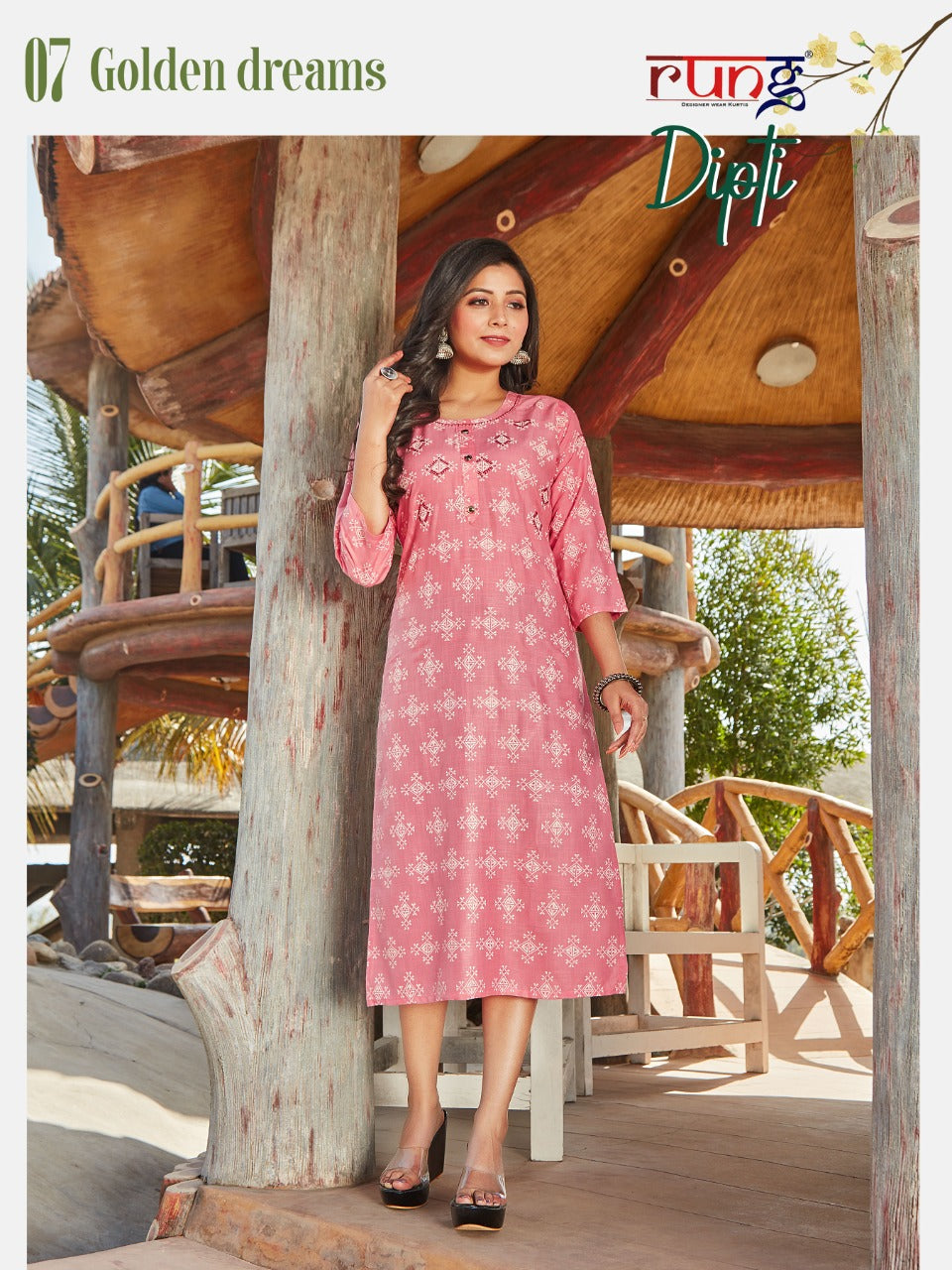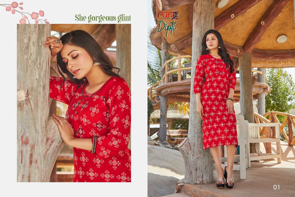 Rung Dipti Rayon Slub Printed Fancy Festive Wear Kurtis