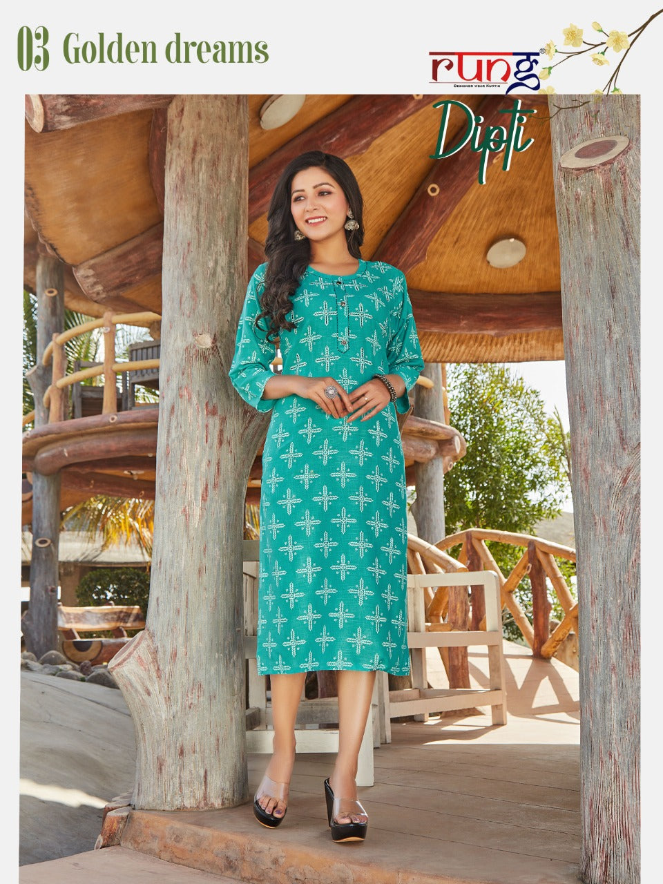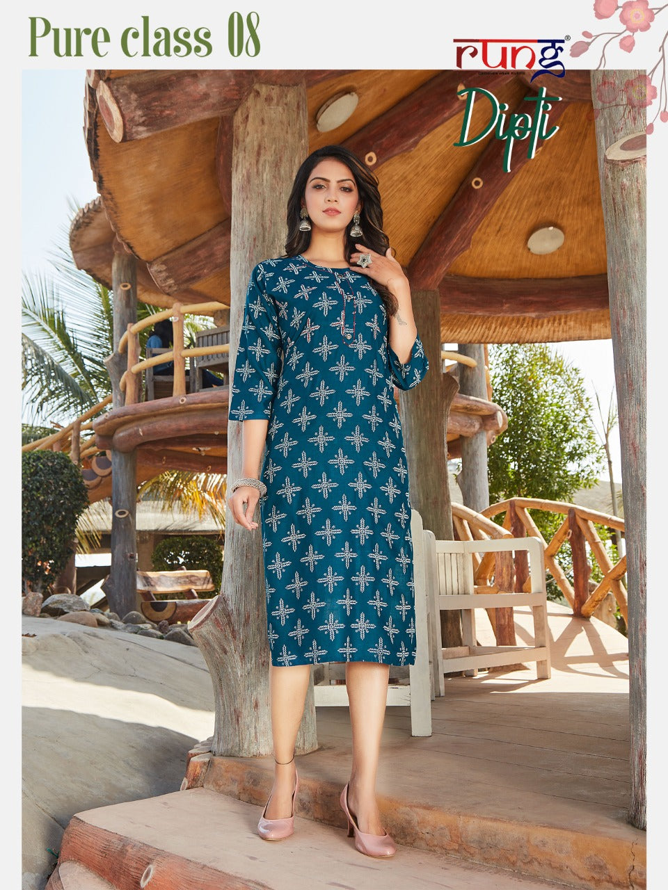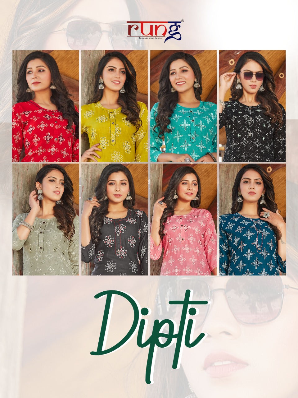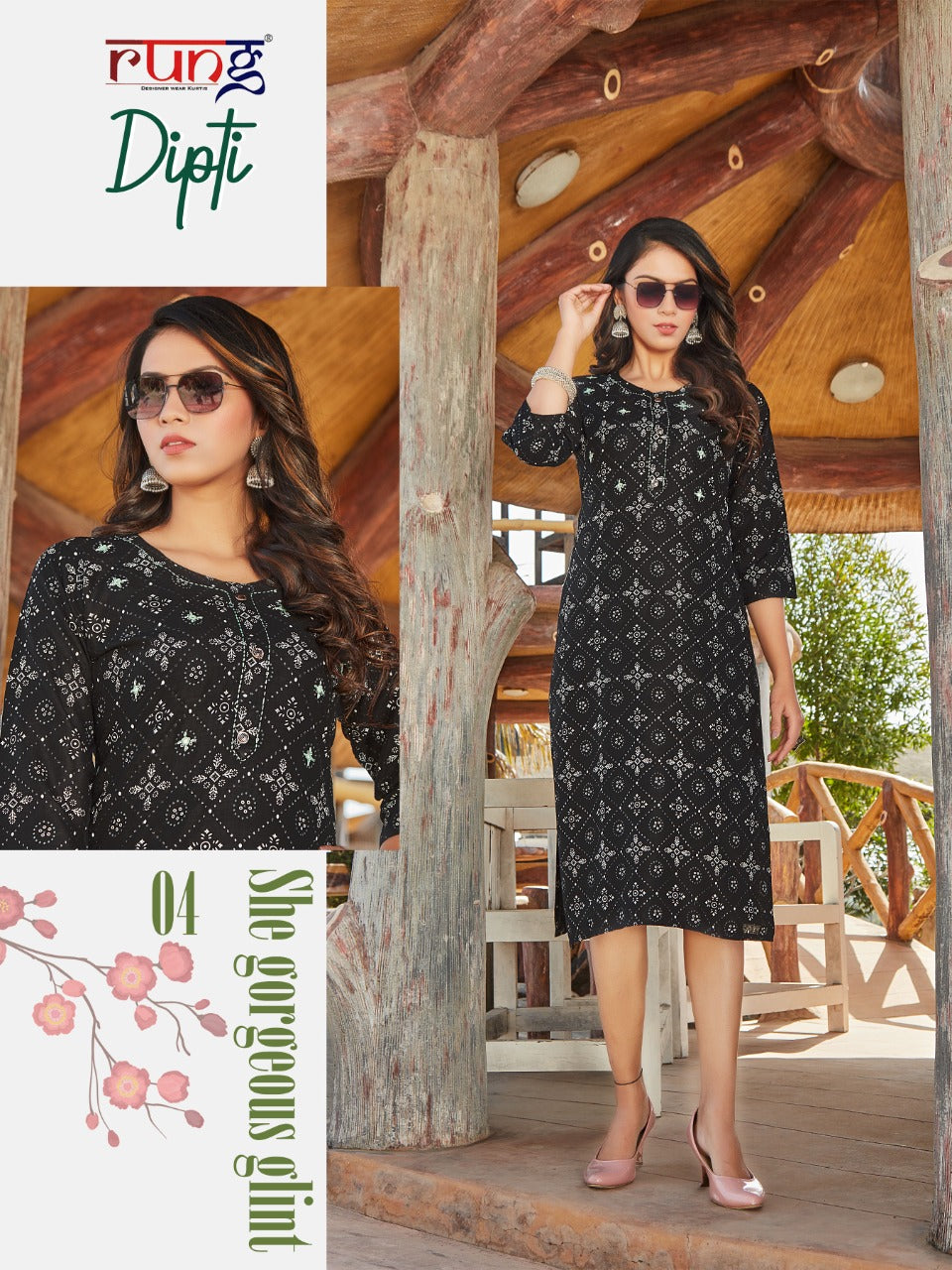 Rung Dipti Rayon Slub Printed Fancy Festive Wear Kurtis