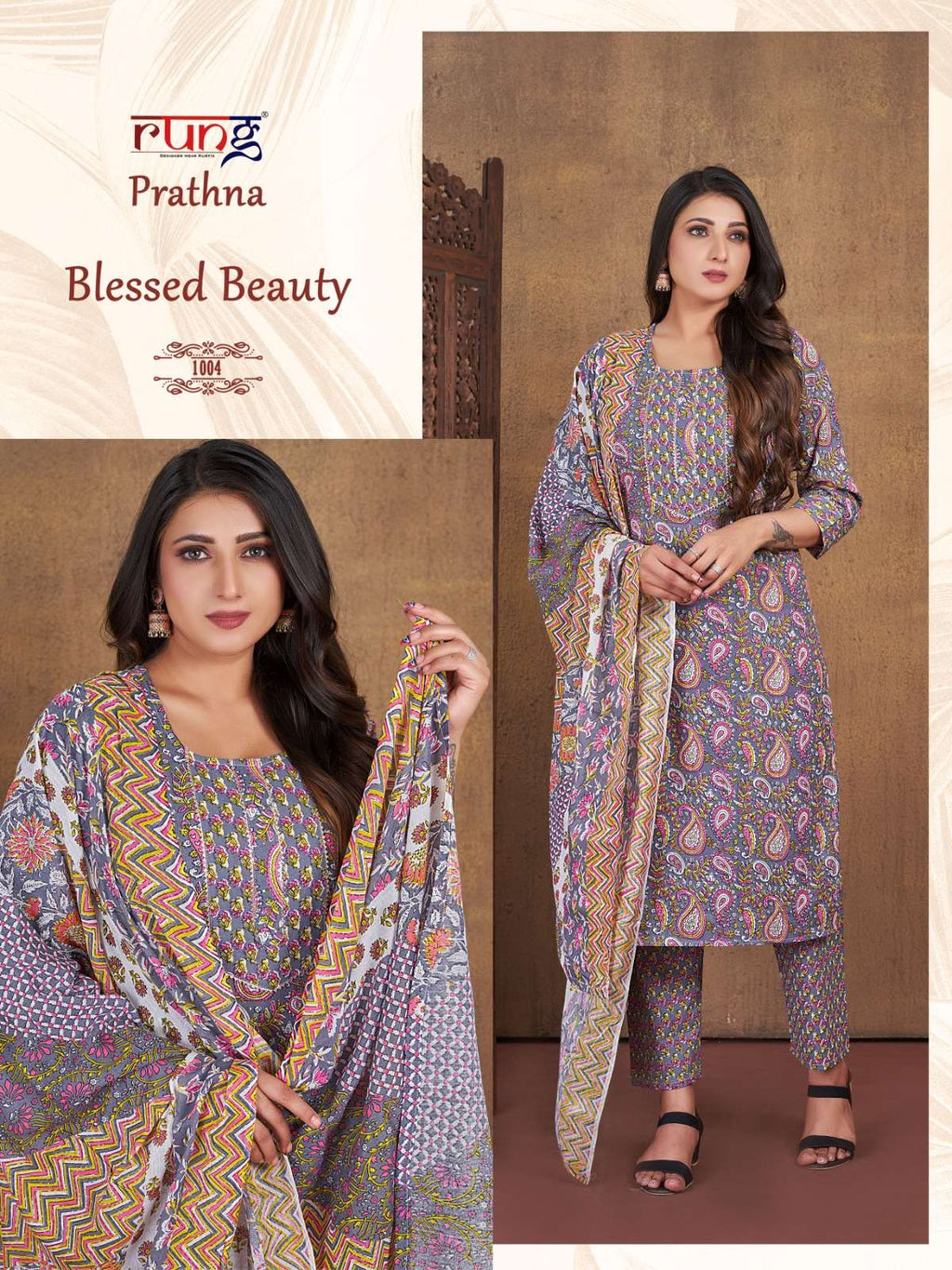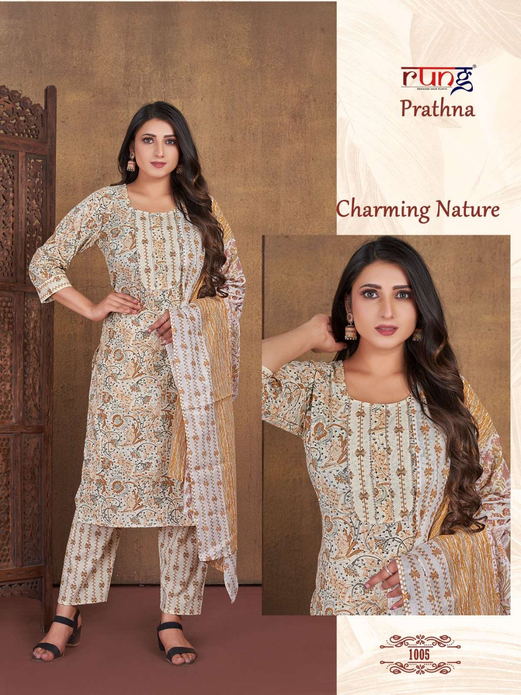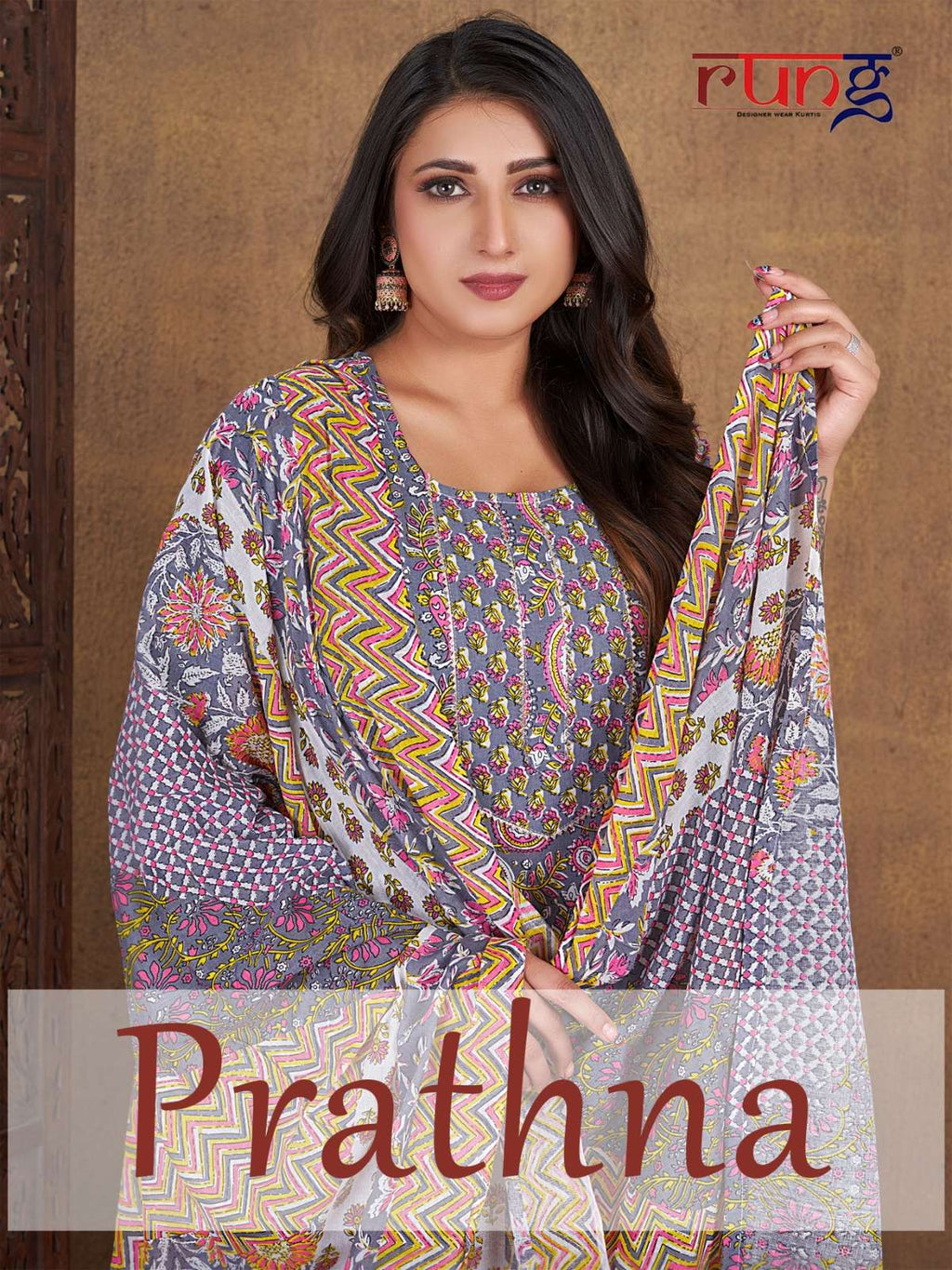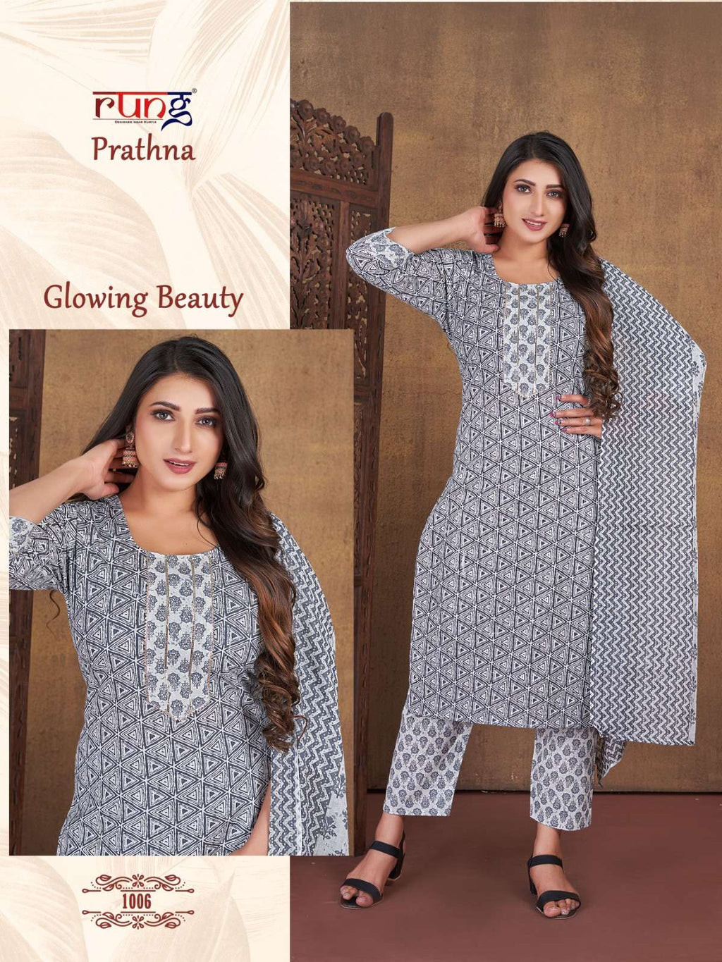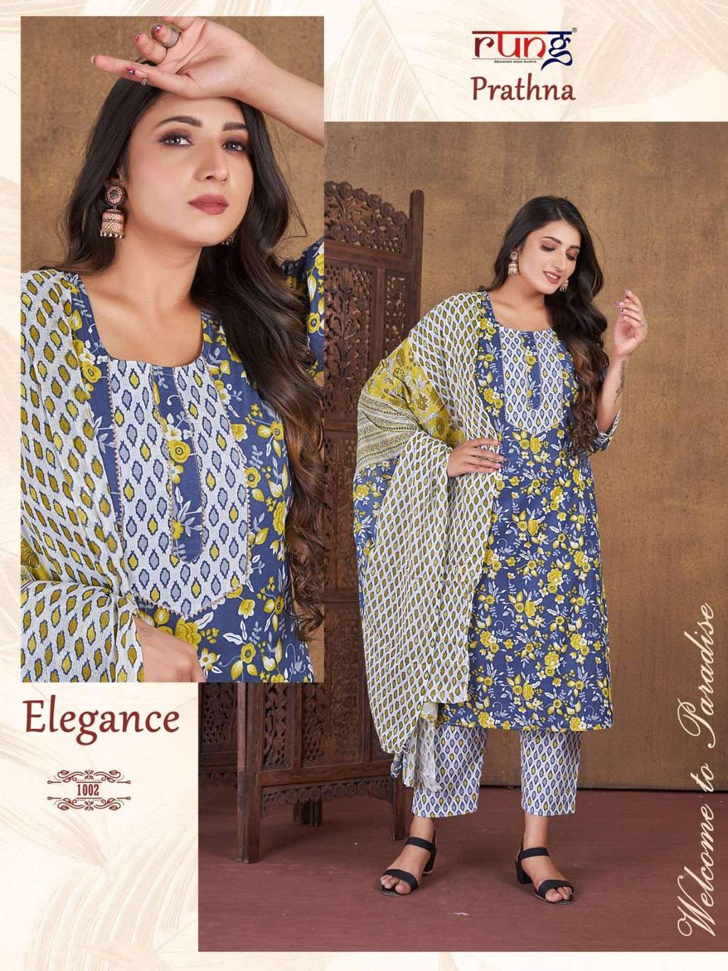 Rung Present Prathna 3pcs Set Adorable Cotton Print Kurti With Pant And Dupatta