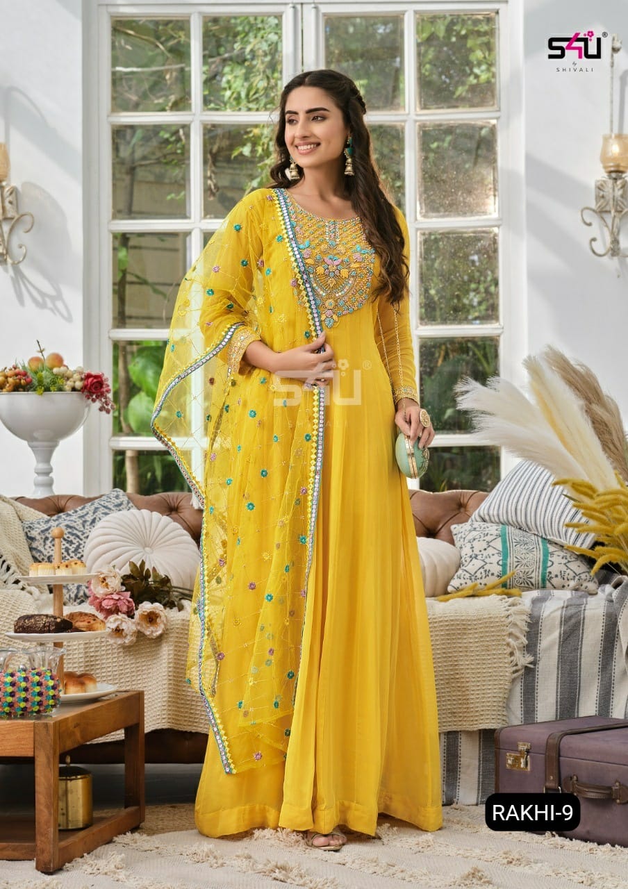 S4u Shivali Dno Rakhi 9 Georgette Wtih Heavy Embroidery HandWork Stylish Designer Party Wear Look Kurti