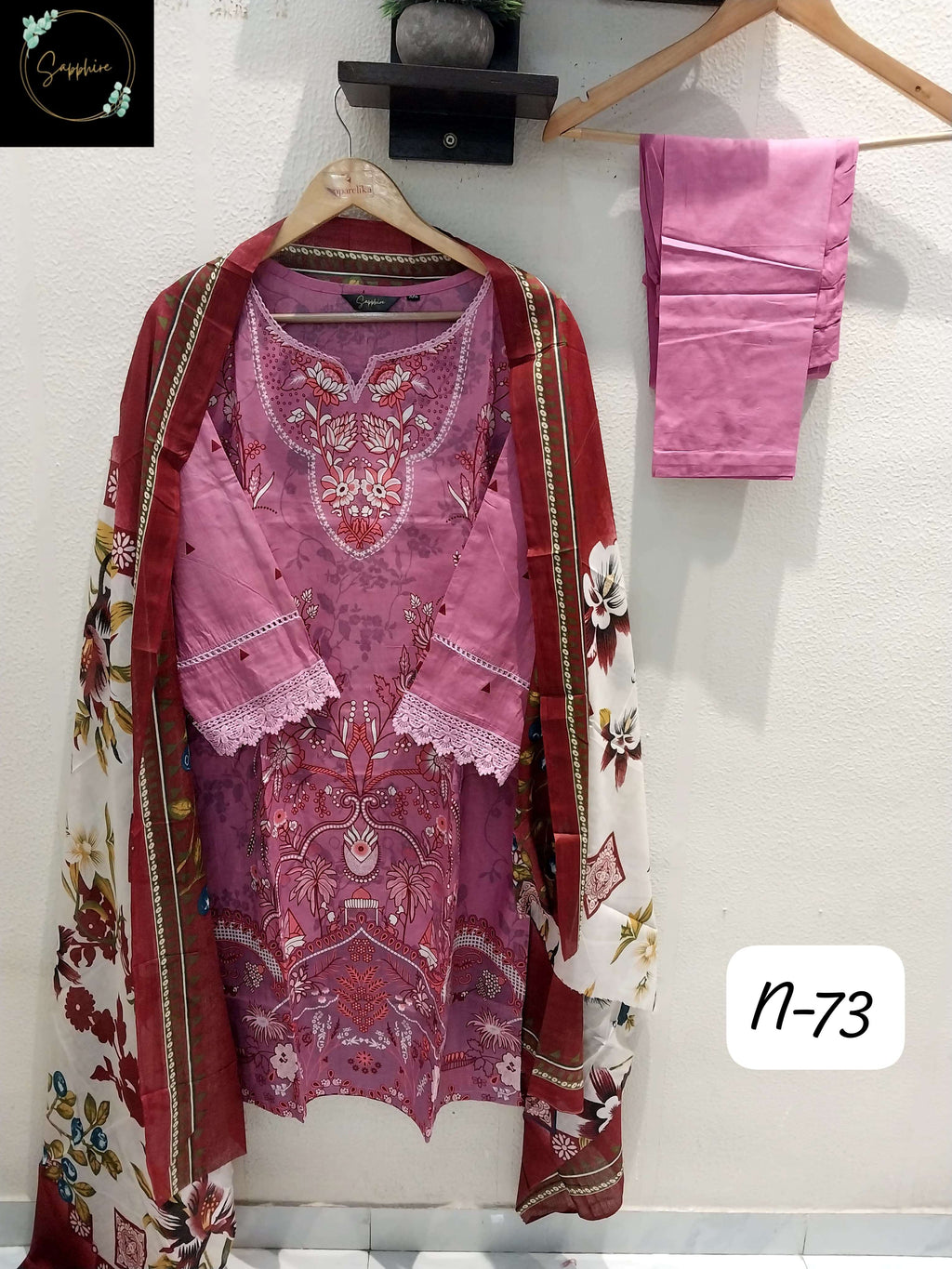 Sapphire Agha Noorain N 73 Lawn Cotton Heavy Gop Lace Work Pret Kurti