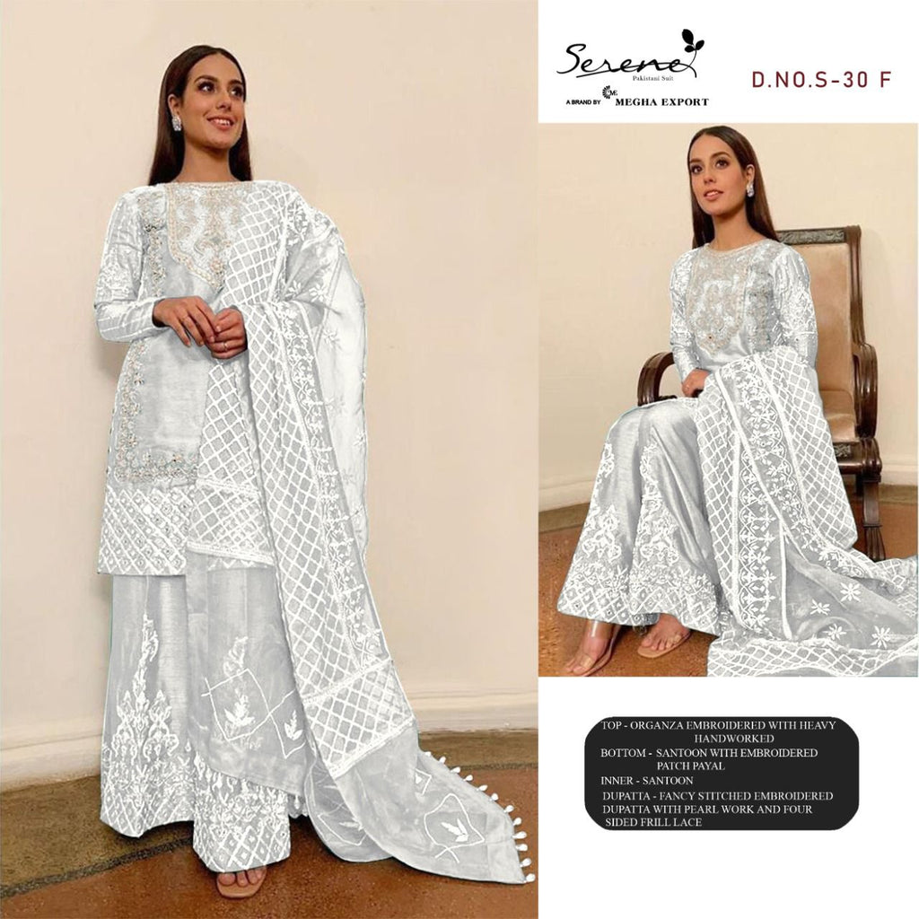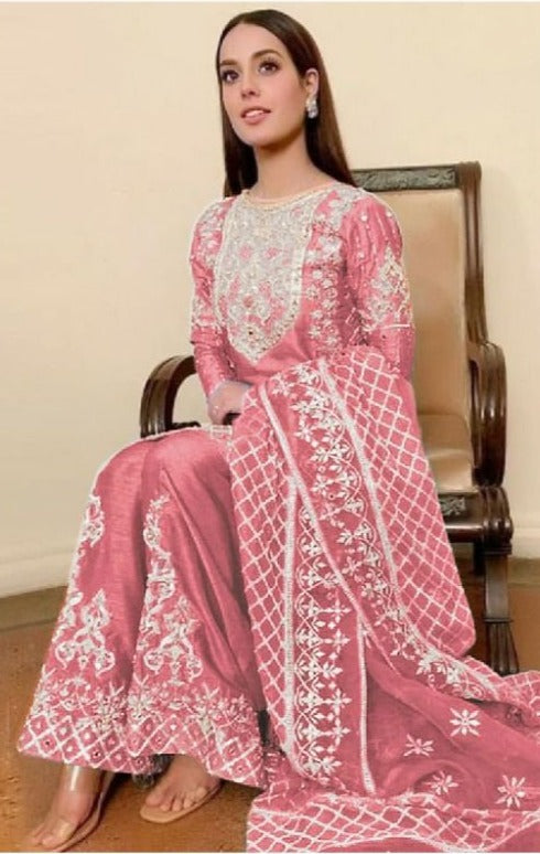 Fabric Details: Top : Organza Embroidered With Heavy Hand Work Bottom – Santoon With Embroidery Patch INNER:- Santoon Dupatta : Fancy Stitched Heavy Embroidered With Pearl Work And Four Sided Frill Lace |