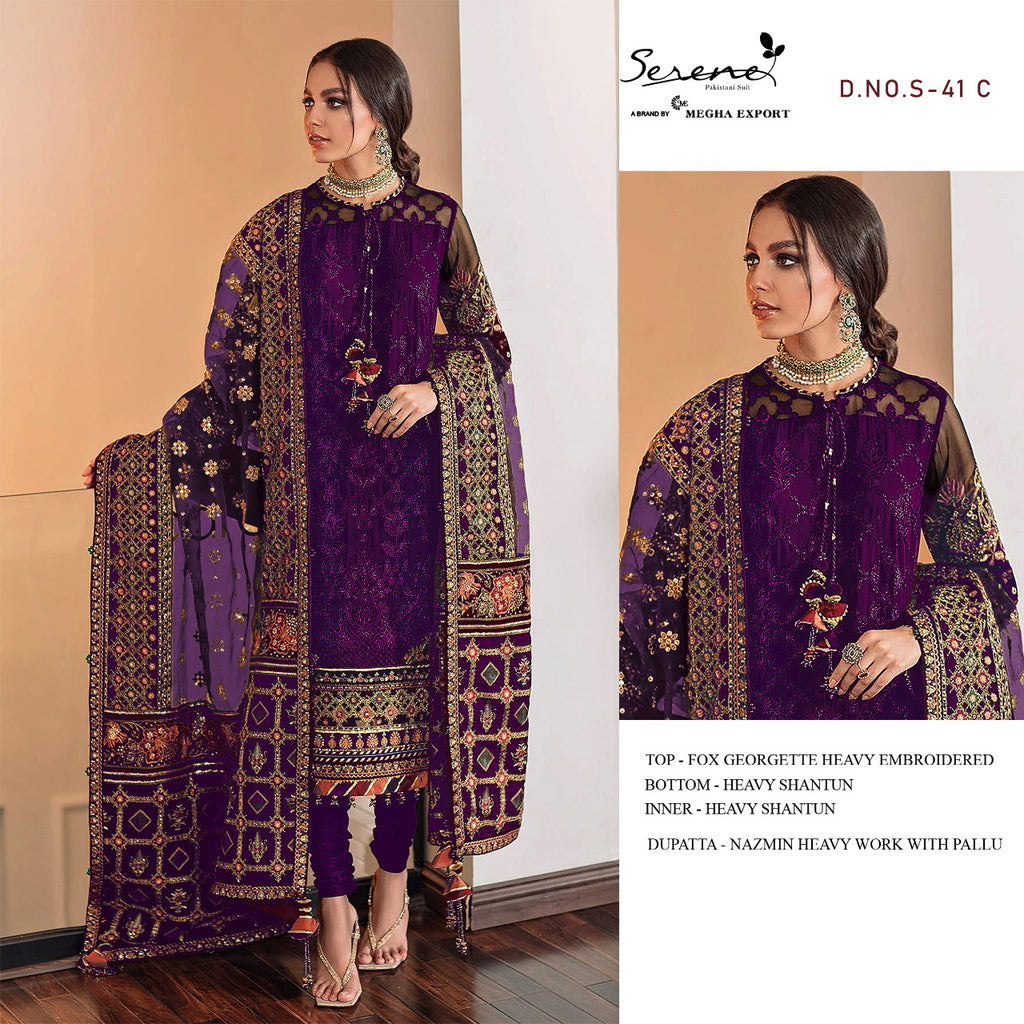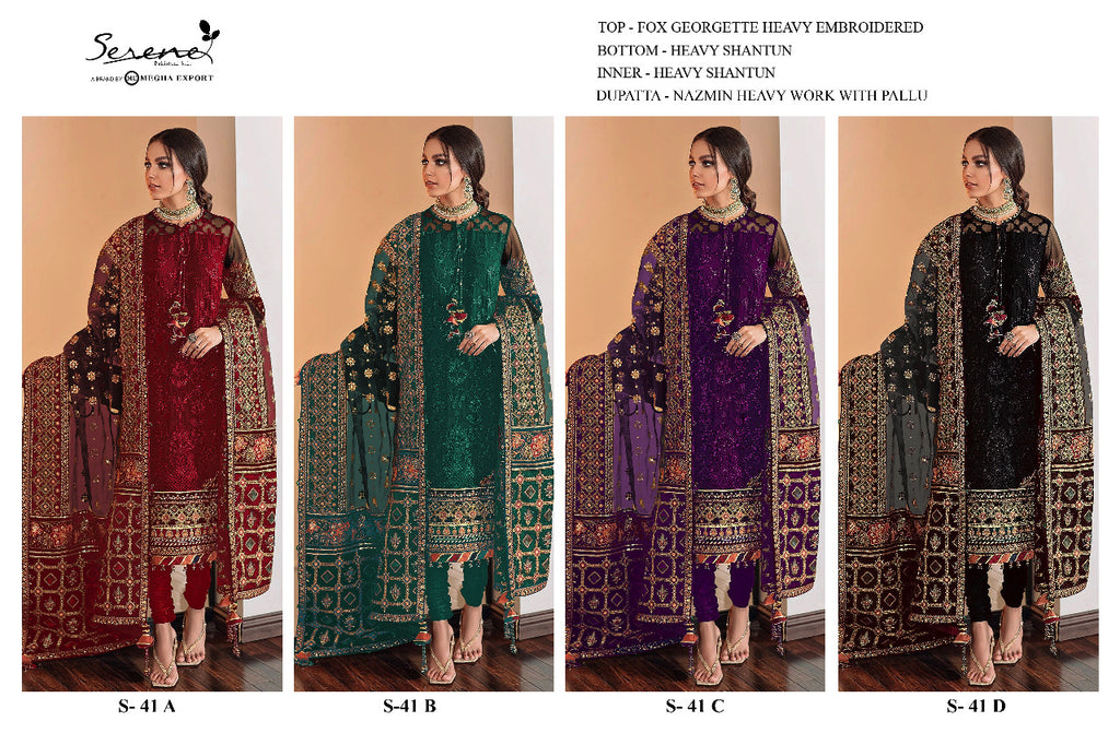 Serene S 41 Fox Georgette Designer Pakistani Style Wedding Wear Salwar Suits