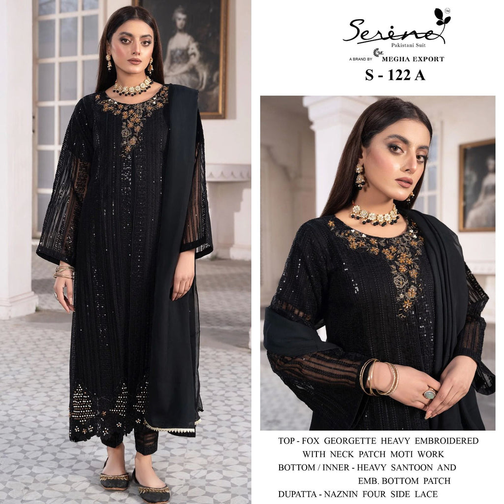 Top:- Fox Georgette Embroidered With Neck Patch Moti Work |