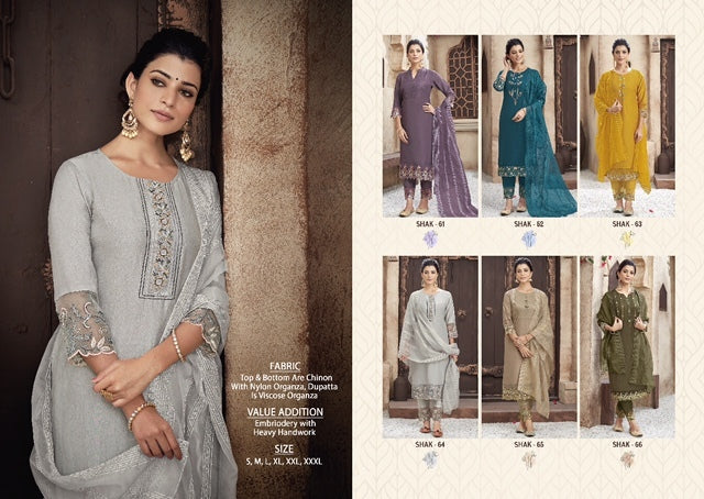 Shichi Anokhi Chinon Fancy Embroidered Party Wear HEavy Kurtis With Bottom & Dupatta