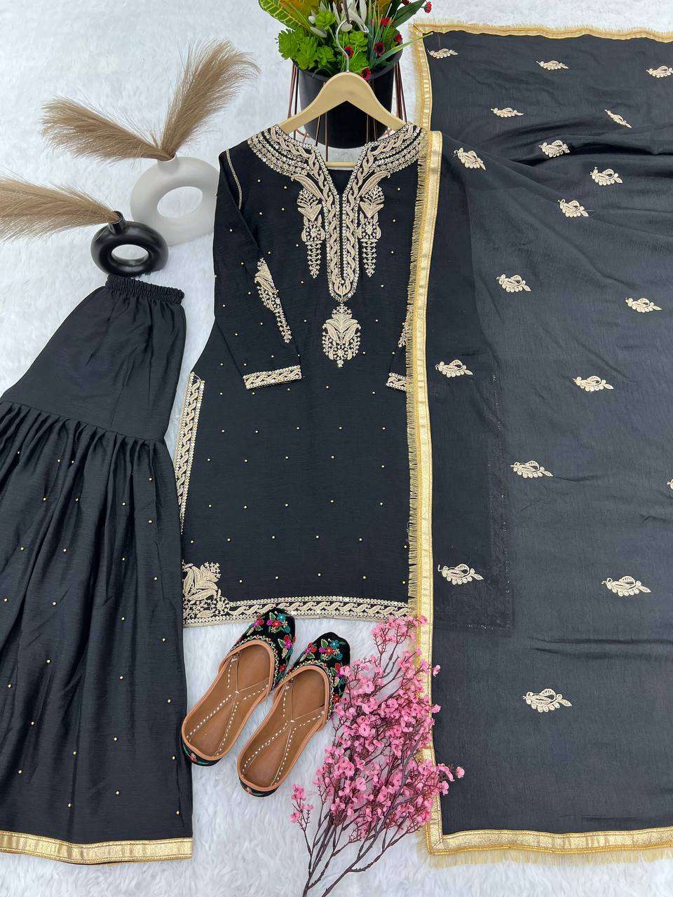 Top Fabric* :Pure Chinnon Silk With Heavy Embroidery Coding-Dori Sequence Work With Peals Work With Full Sleeve *Top Inner* :Heavy Micro Cotton *Top Length:-40-41inch* *Top Size*. : *M(38),L(40), Xl(42), Xxl(44)* *(Fully Stitched Ready To Wear)*