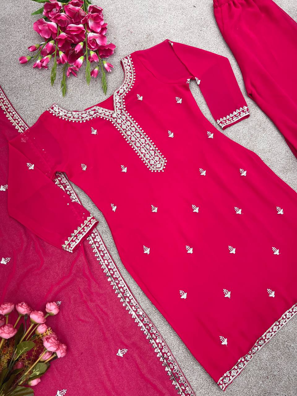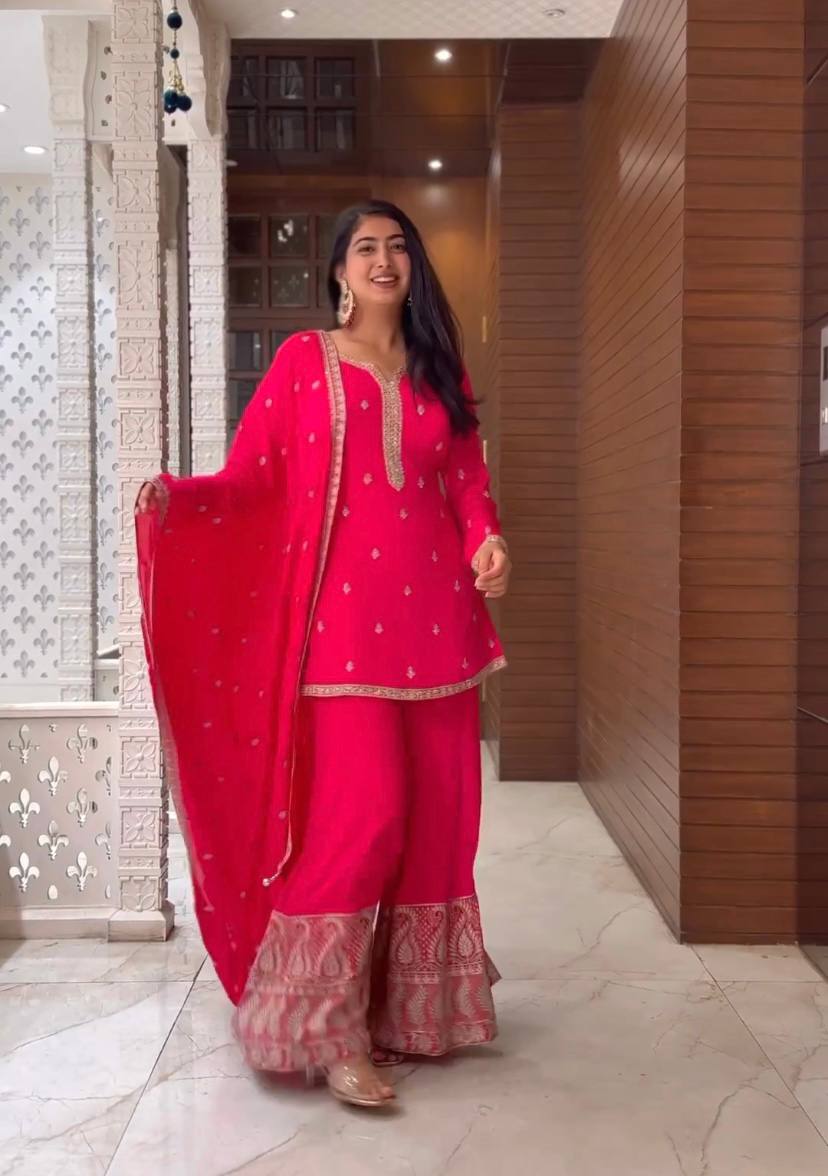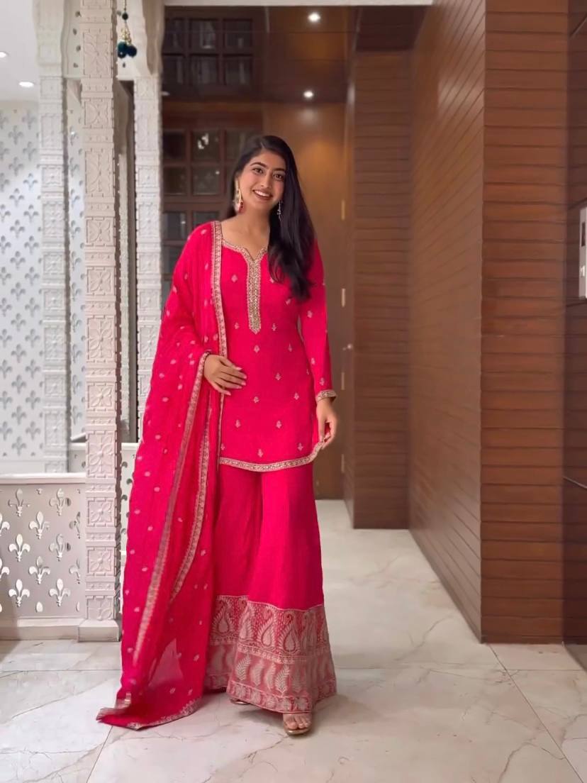 *Plazo* *Plazzo Fabrics* :Heavy Faux Georgette With *5mm Embroidery Sequence Work With Fully Flair* *Plazzo inner* :Heavy Micro Cotton *Plazzo Length*:40-41 Inch *(fully stitched)*
