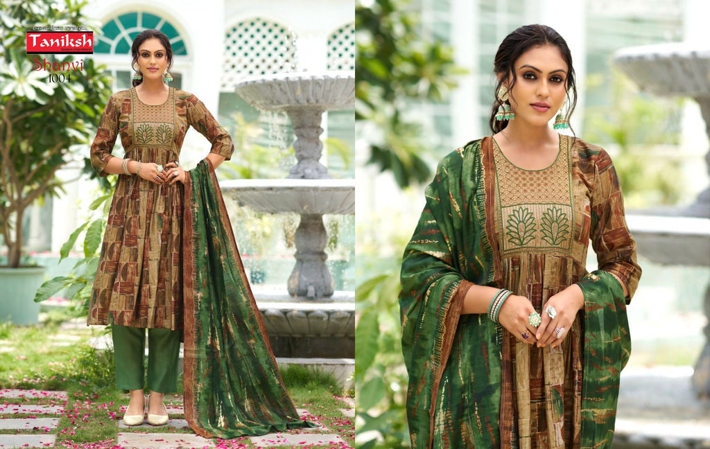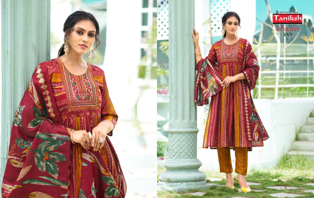 TOP:MUSLIN PRINT WITH NYRA CUT BOTTOM: ROMAN SILKS PANT DUPATTA:MUSLIN FOIL PRINTED DUPATTA |