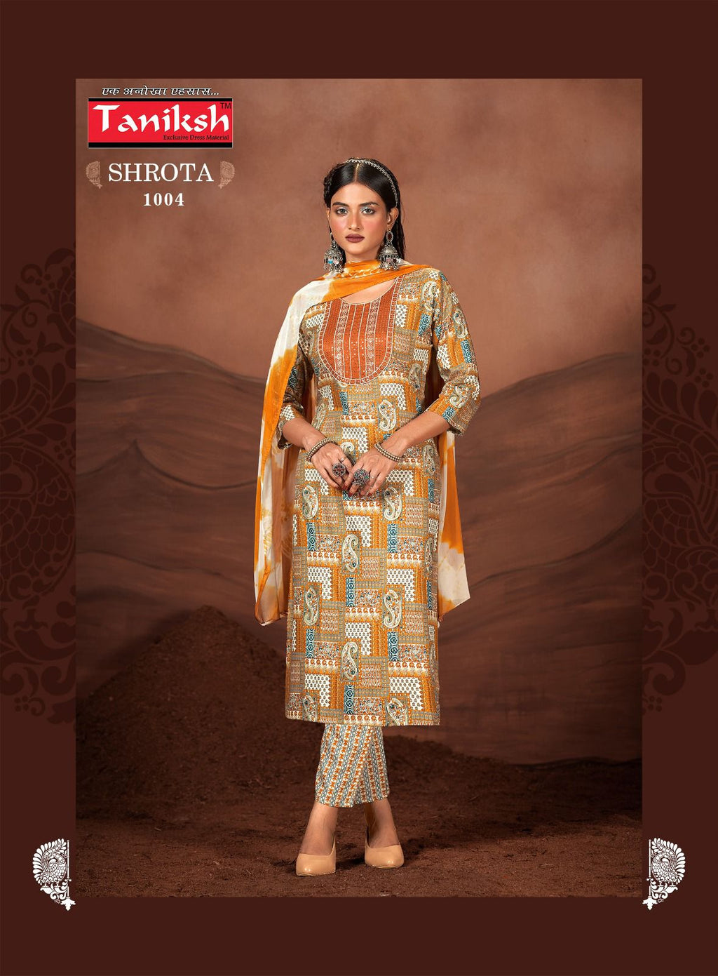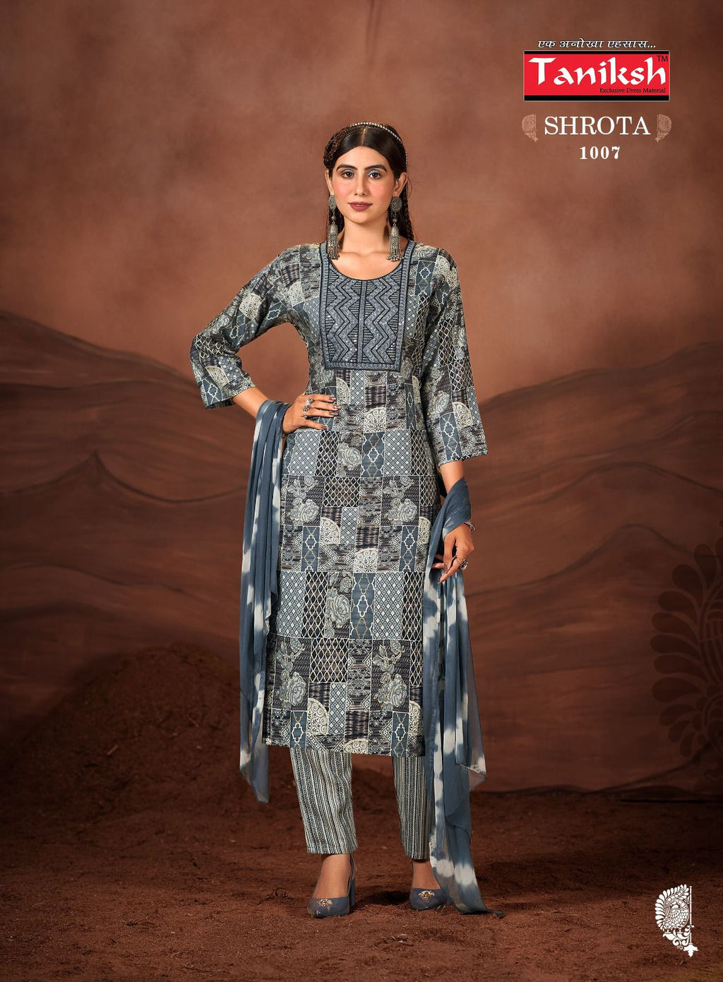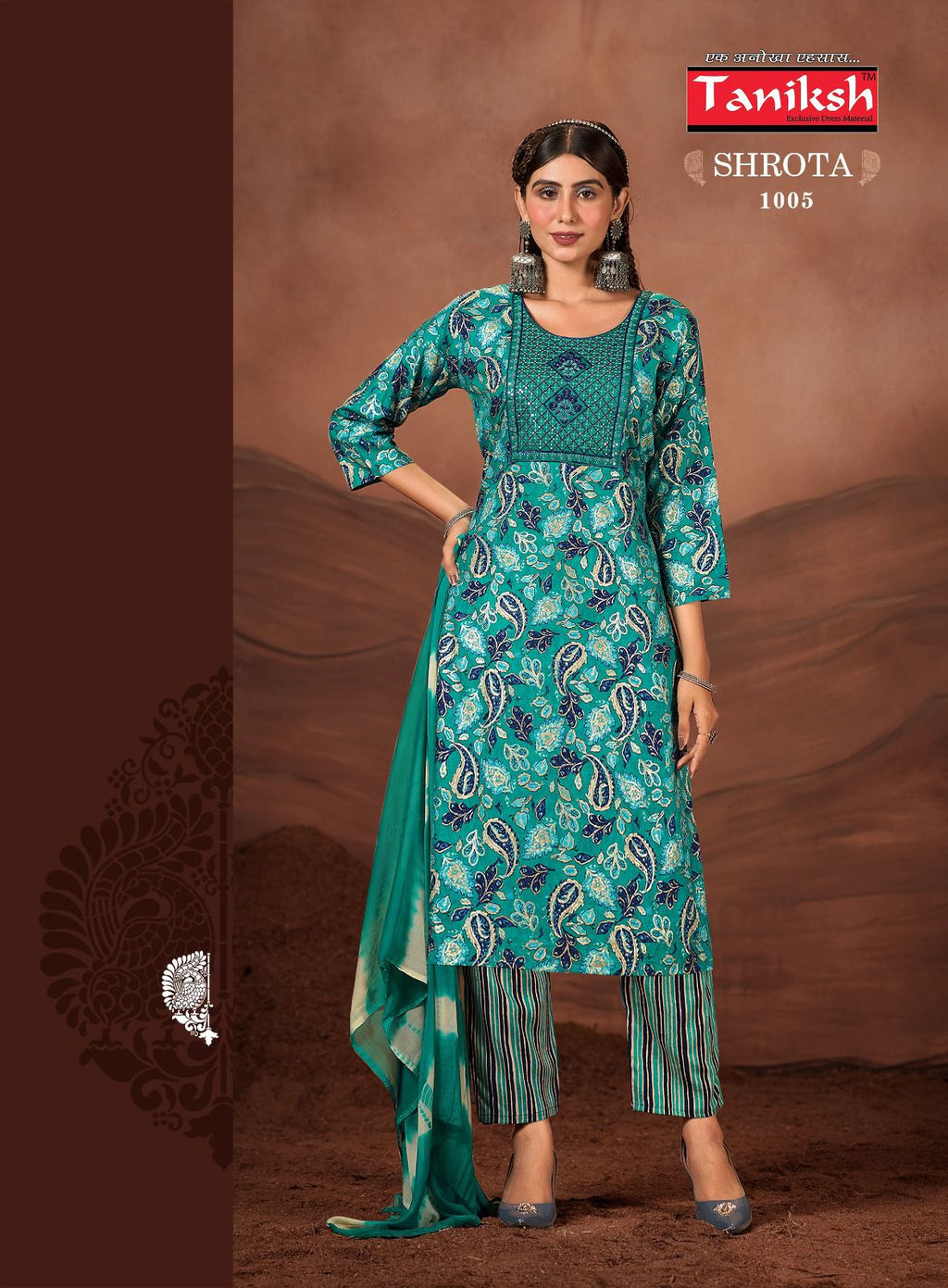 Taniksh Shrota Vol 1 Rayon Printed Embroidery Work Kurti With Pant Collection