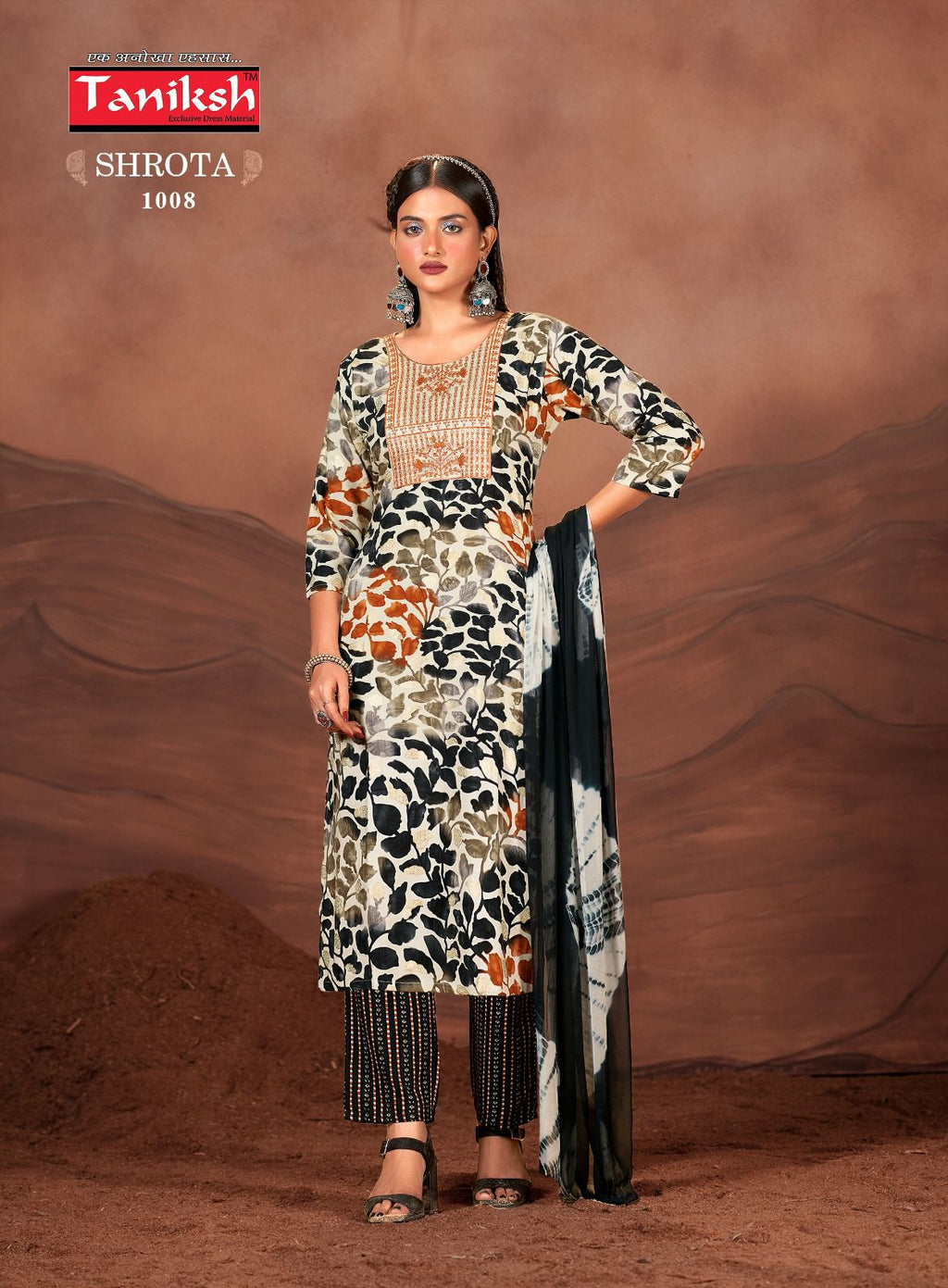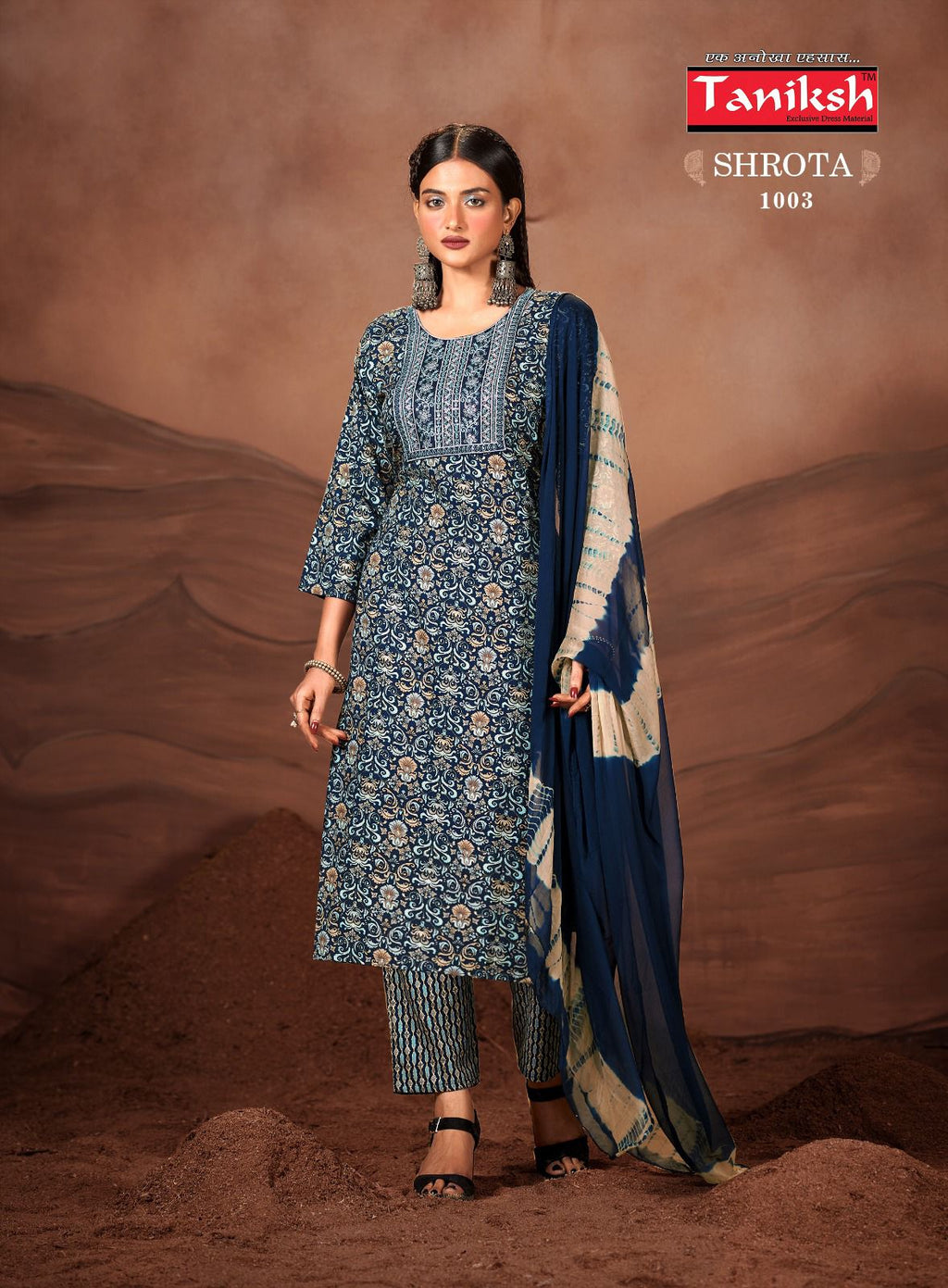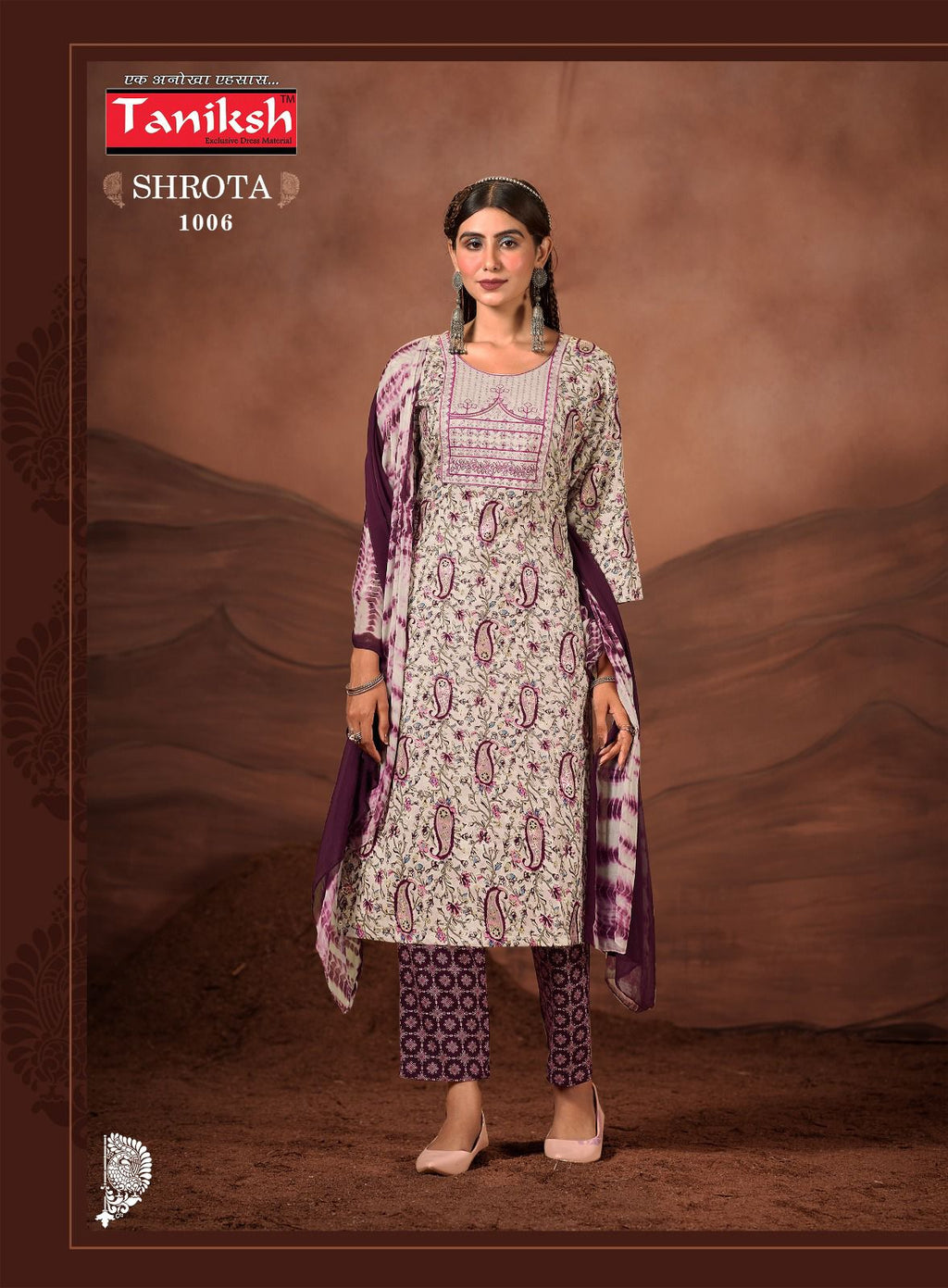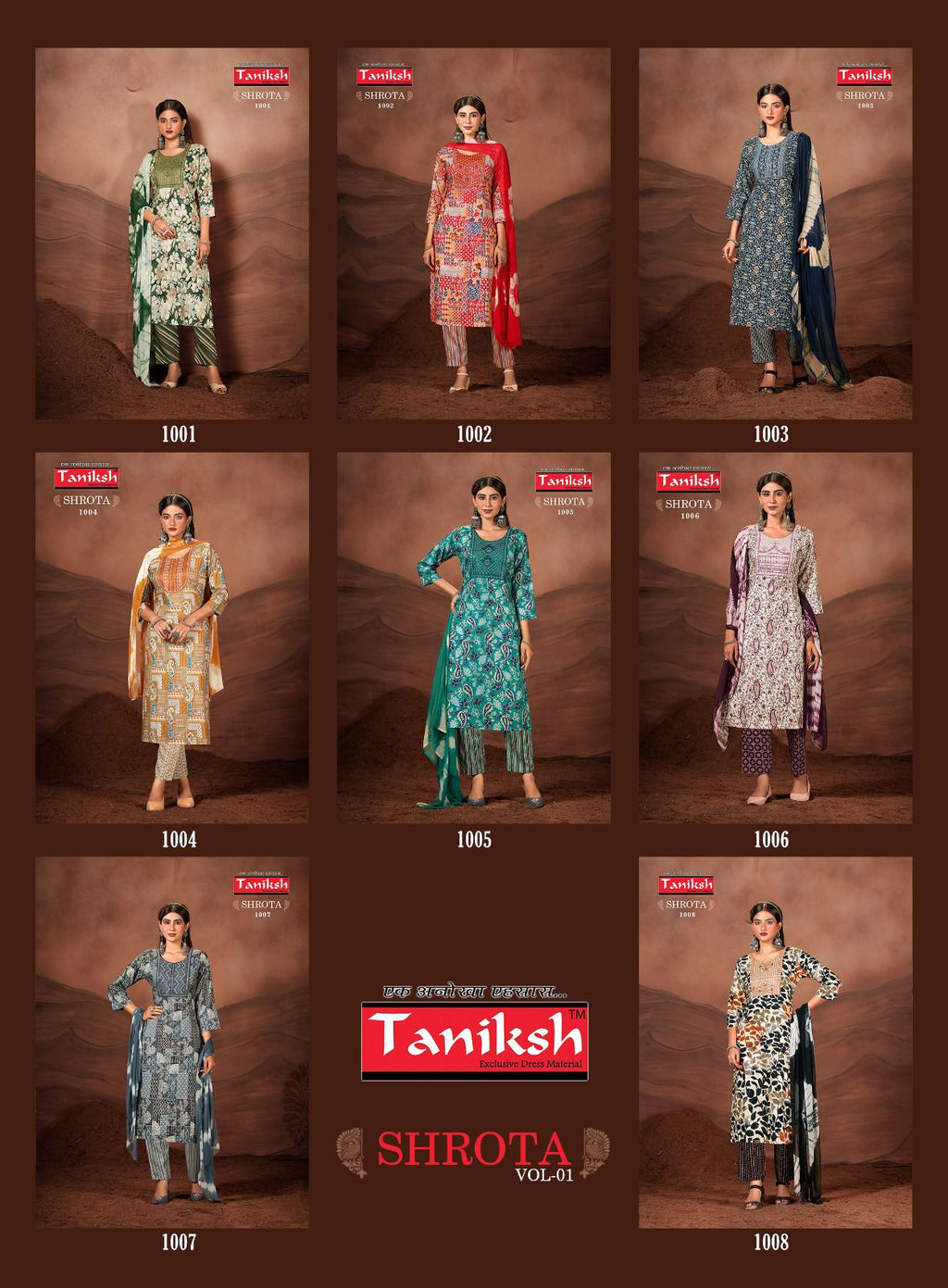 Taniksh Shrota Vol 1 Rayon Printed Embroidery Work Kurti With Pant Collection