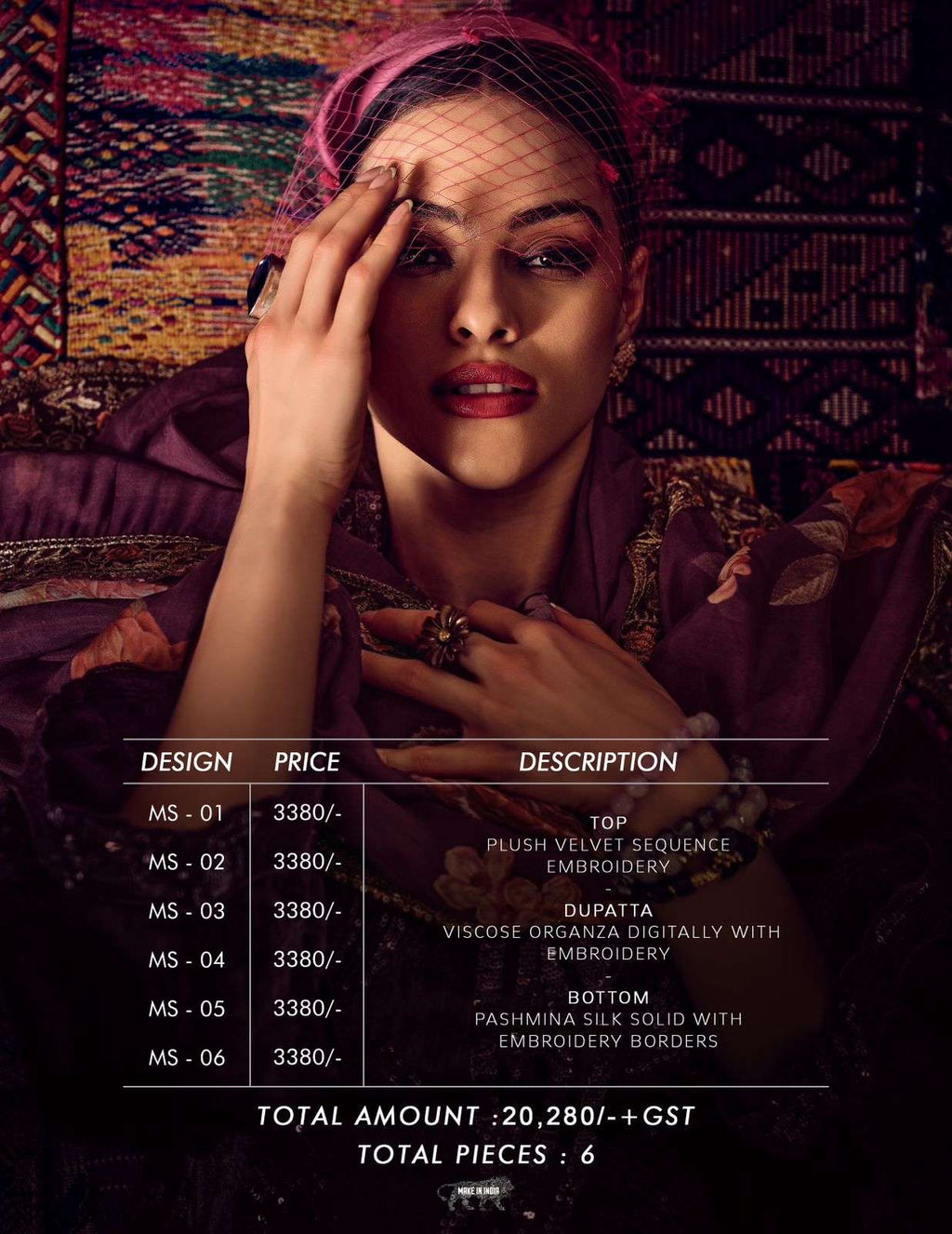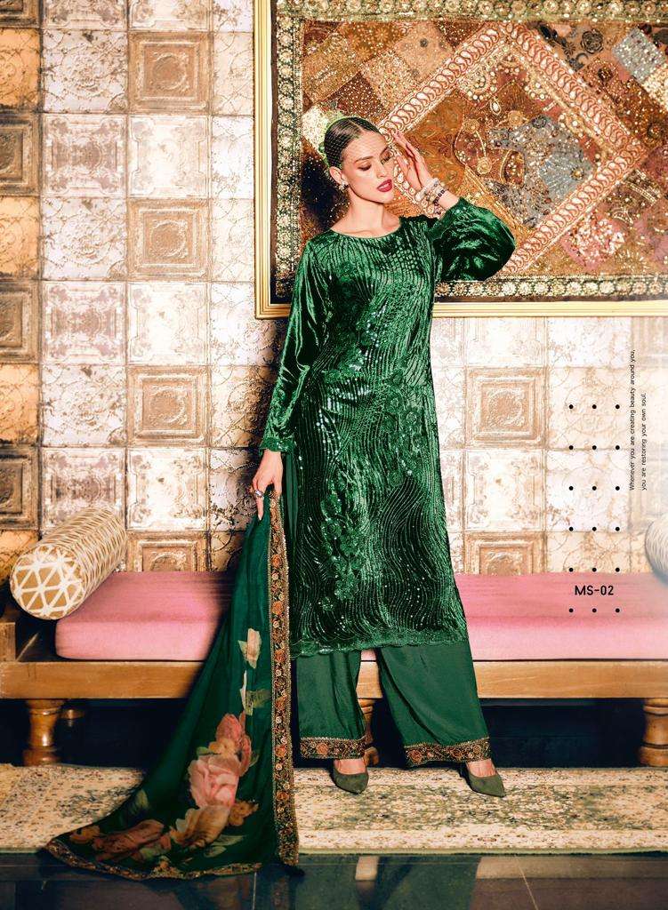 Top: Plush Velvet Sequans Embroidery Bottom: Pashmina Silk Solid With Embroidery Border Dupatta: Viscose Organza Digitally With Embroidery |