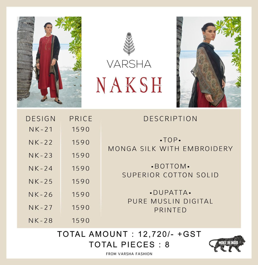 Varsha Naksh Monga Silk With Embroidered Designer Stylish Salwar Suit