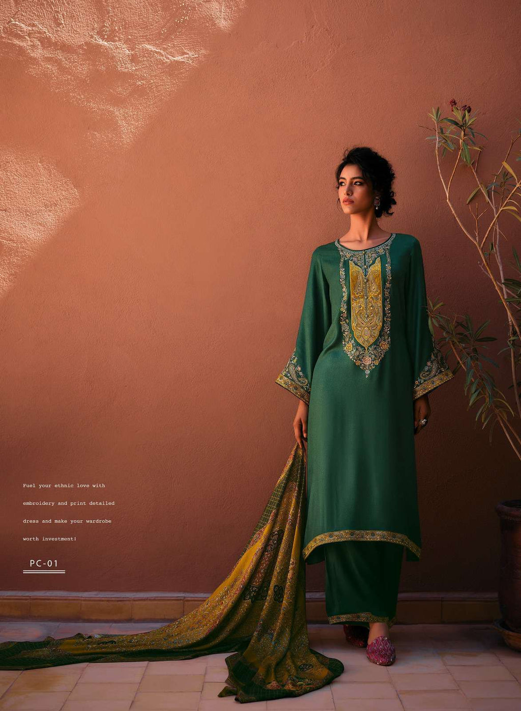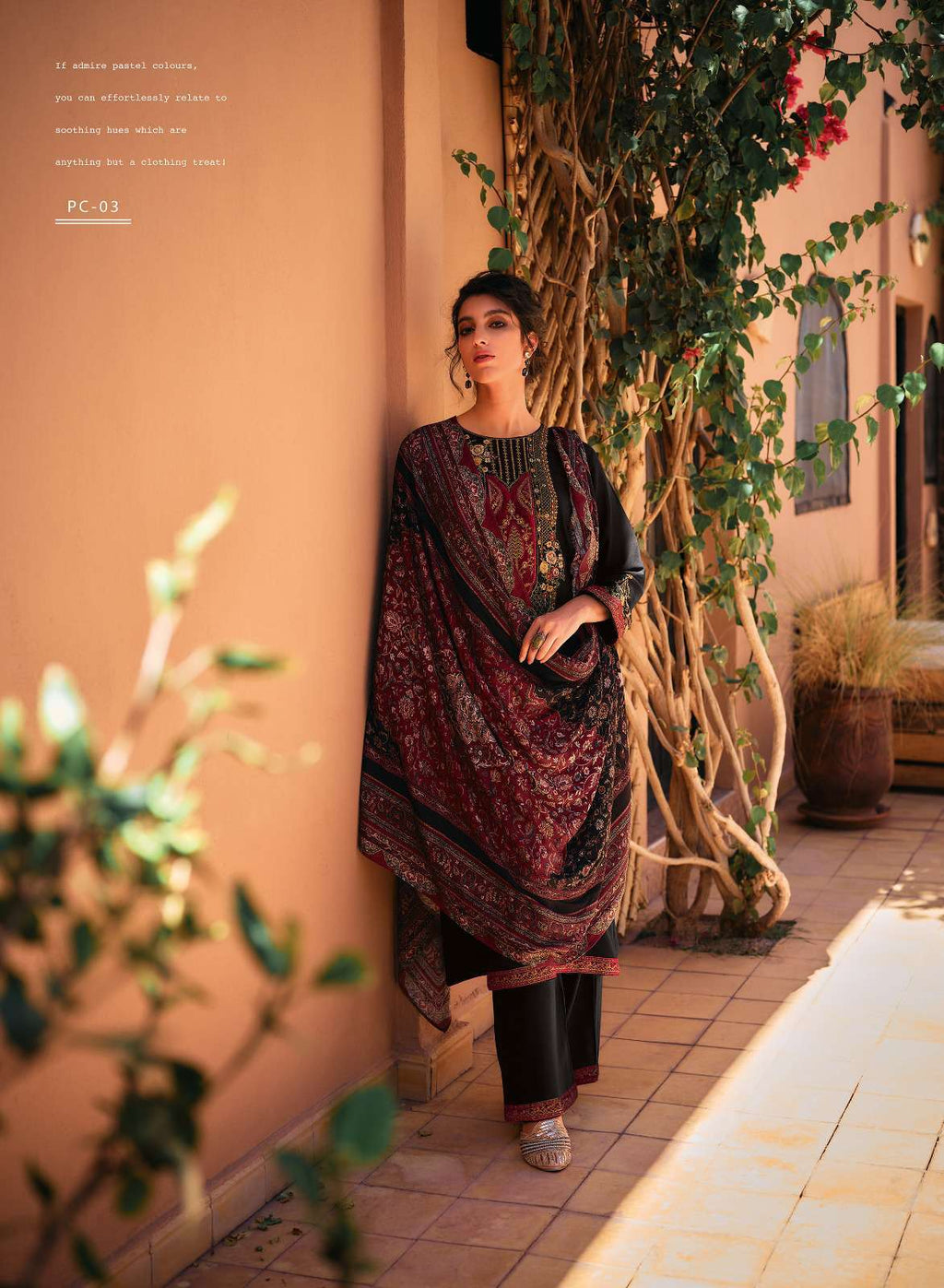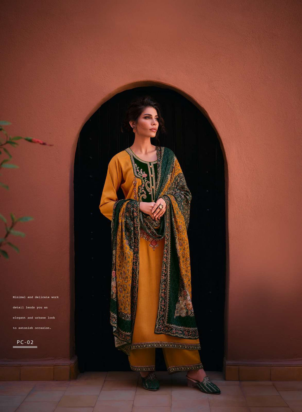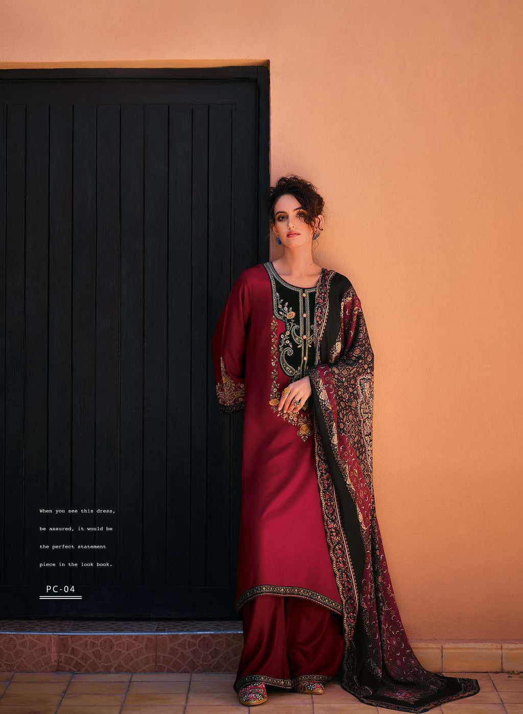 Top: Pashmina Silk Solid With Embroidery Velvet Patches For Front And Border With Extra Embroidery Sleeves Bottom: Pashmina Silk Solid With Border Dupatta: Pashmina Silk Digitally Printed |