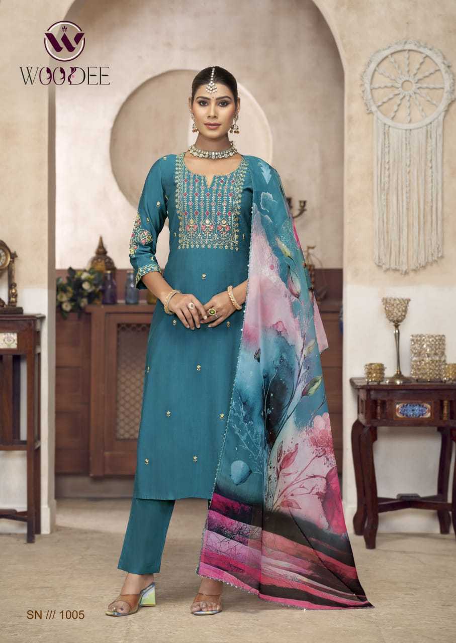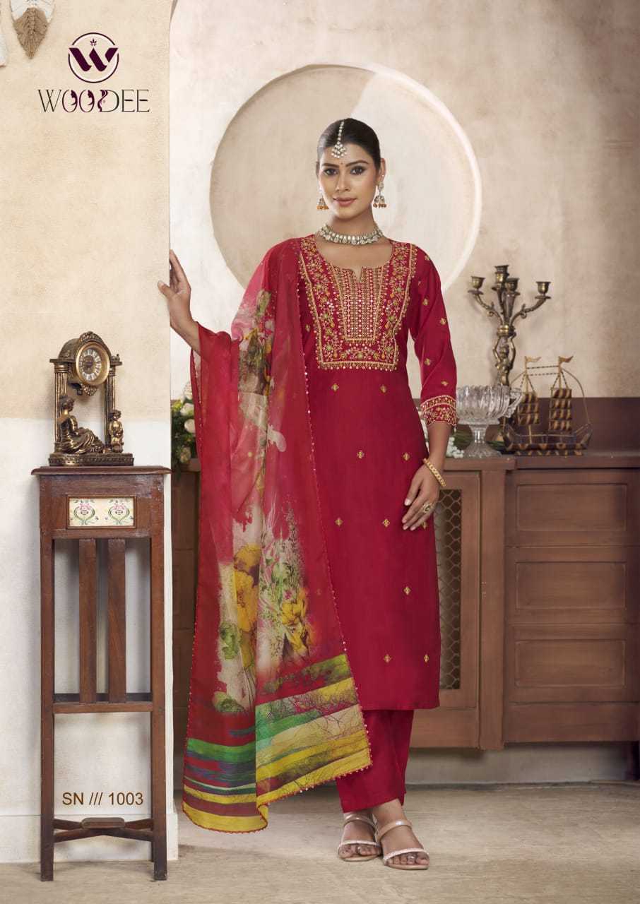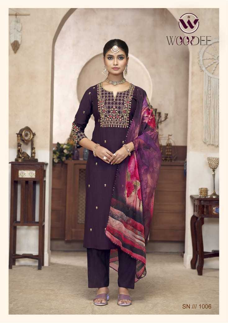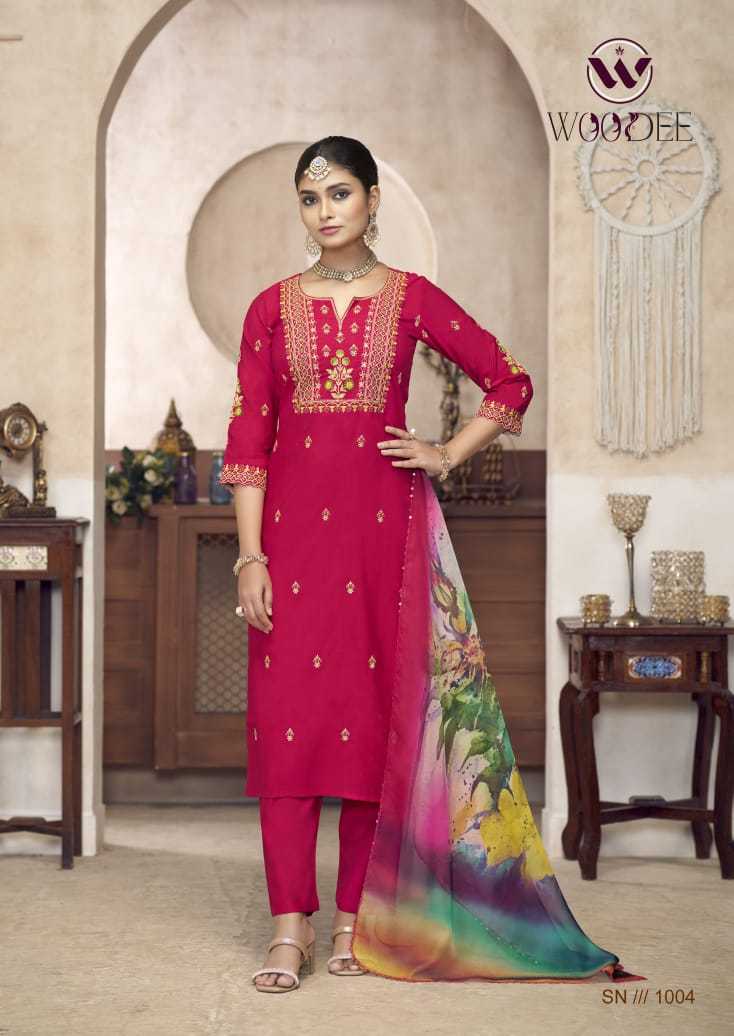 Woodee Diana Viscose Silk Festiv Wear Kurti Pant Dupatta Set