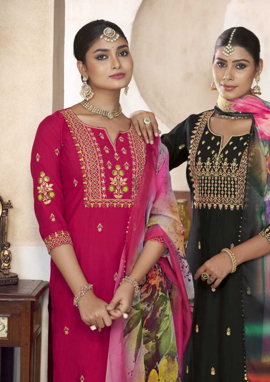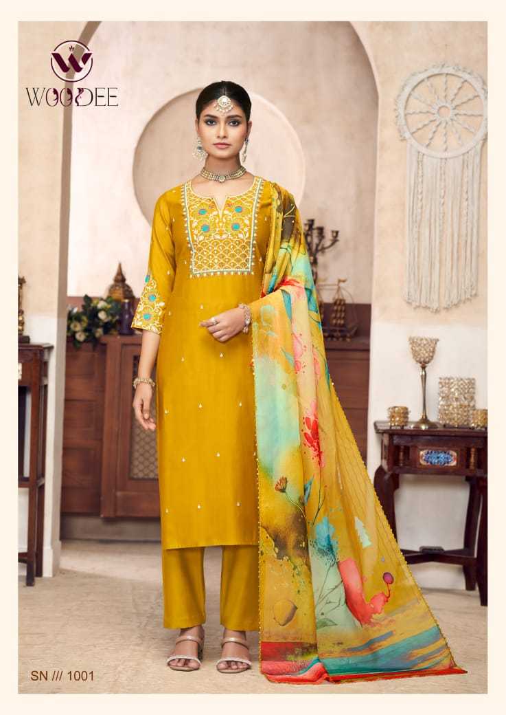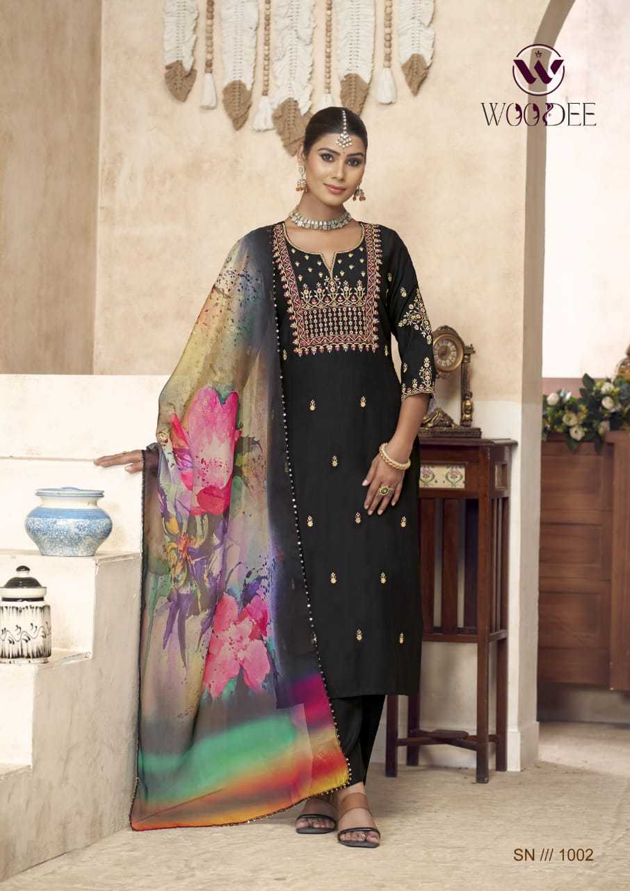 Woodee Diana Viscose Silk Festiv Wear Kurti Pant Dupatta Set