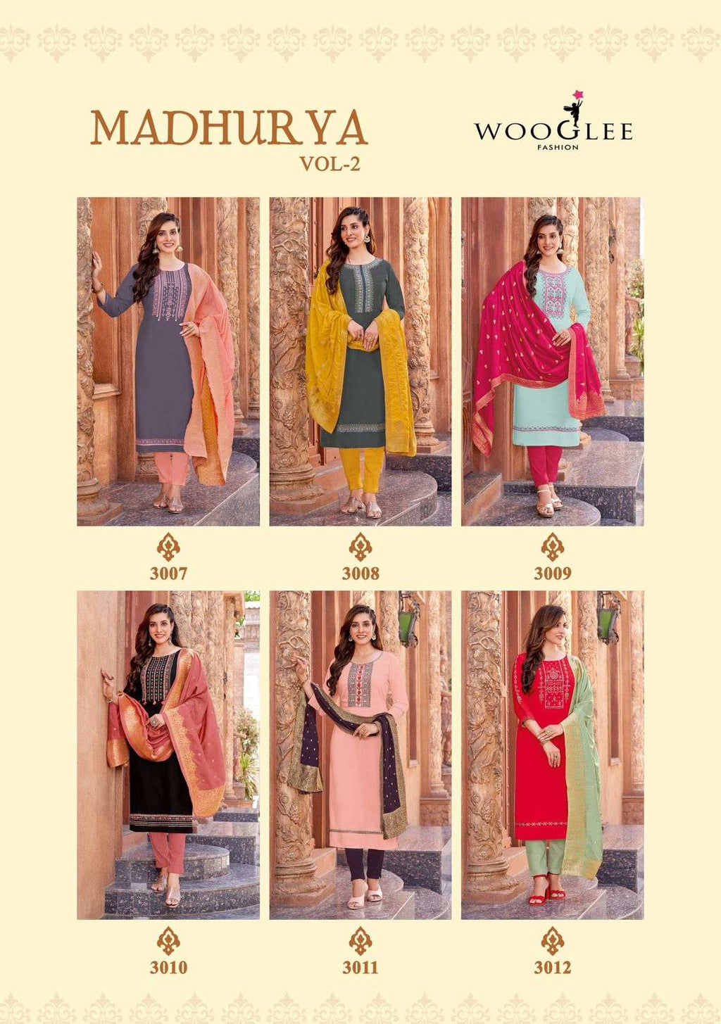 Wooglee Madhuriya Vol 2 Rayon Embroidery Work Fancy Kurti With Pant