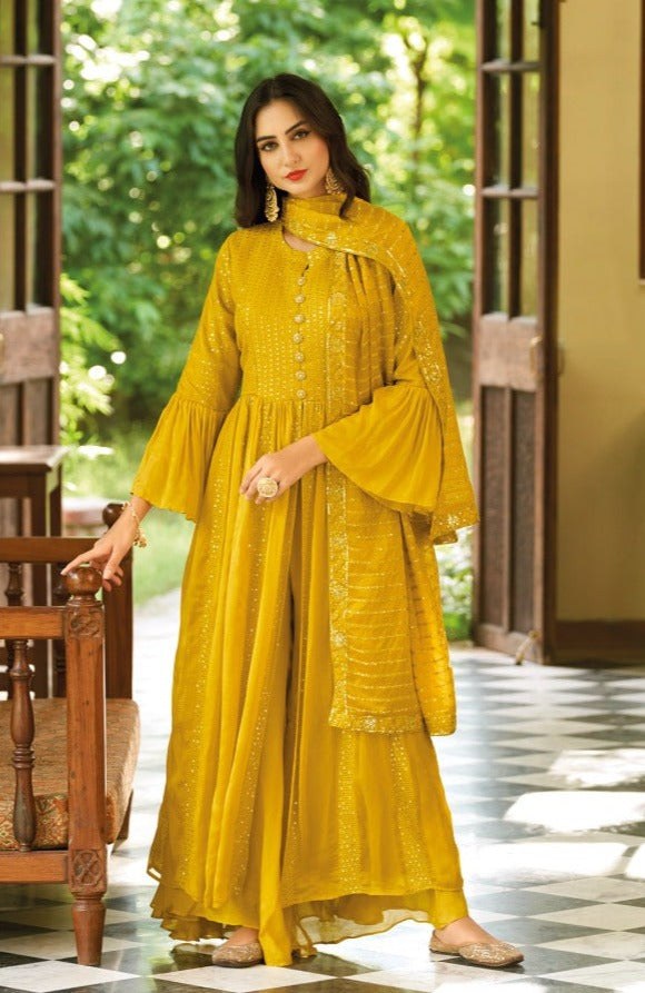Your Choice Haldi Georgette With Beautiful Work Stylish Designer Festive Wear Long Salwar Kameez