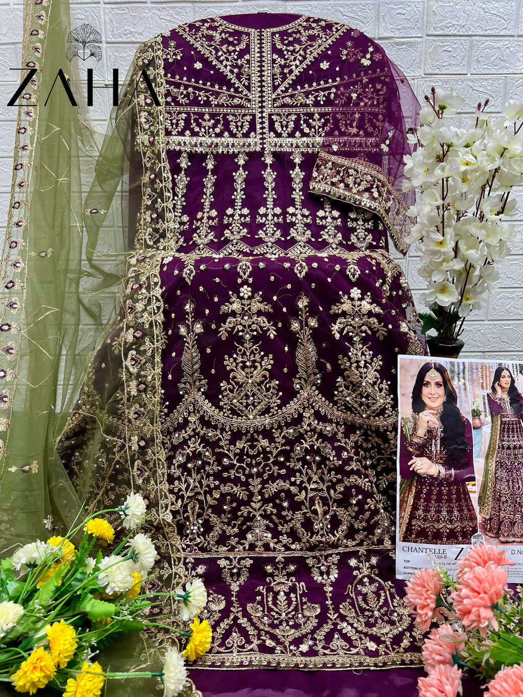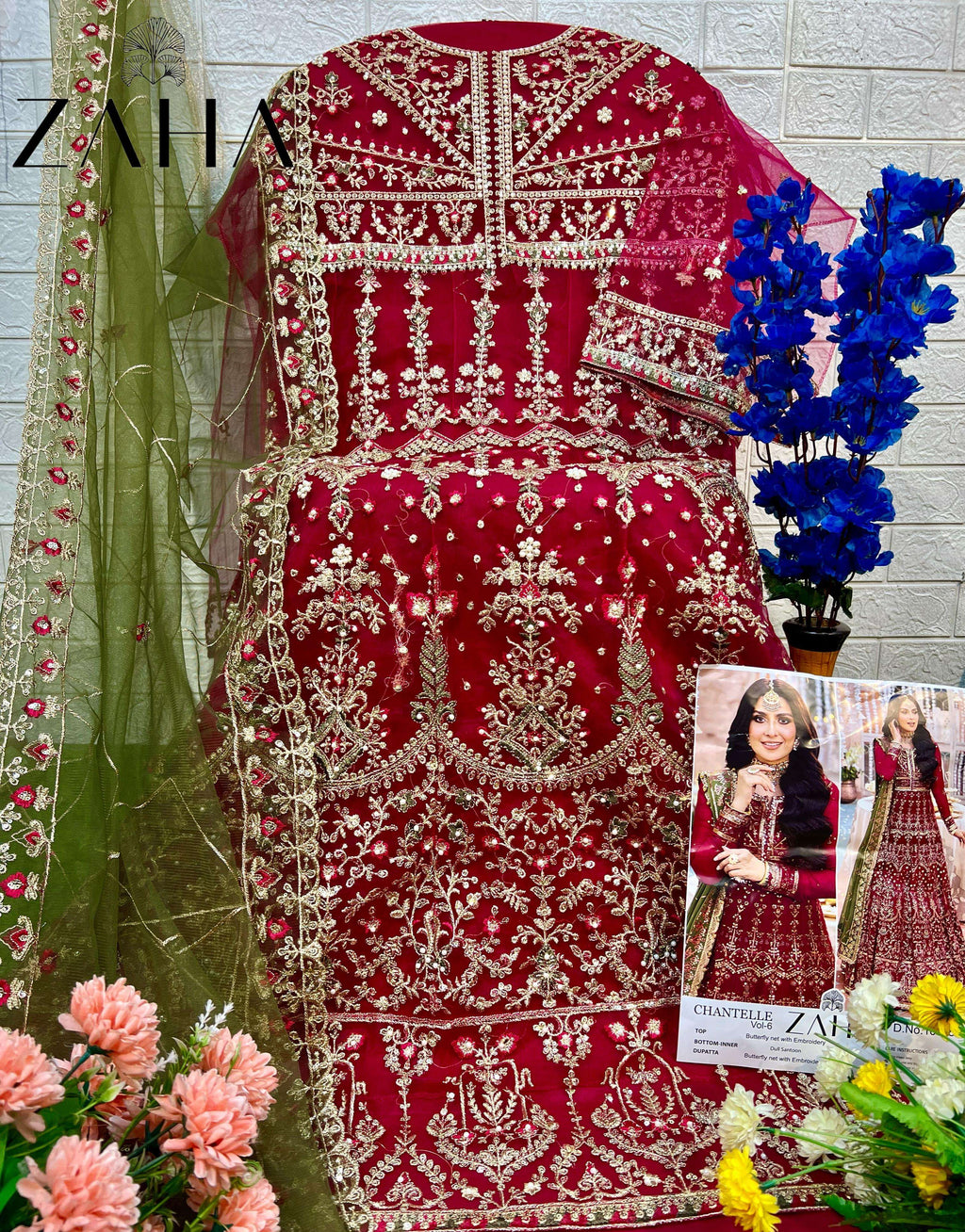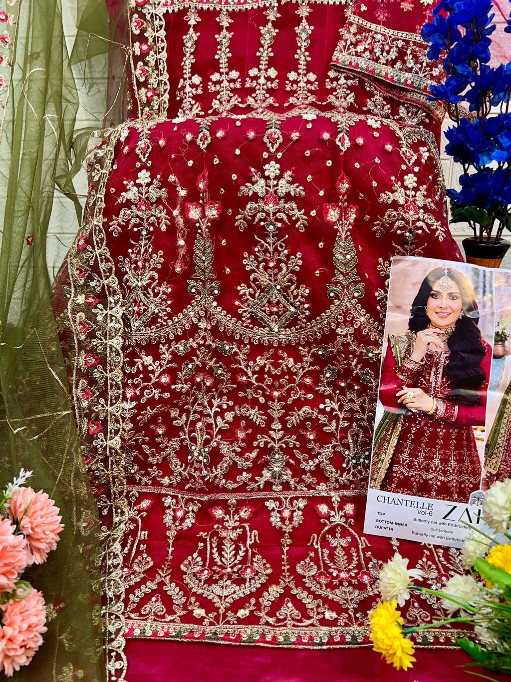 Zaha Chantelle Vol 6 Butterfly Net With Heavy Embroidered With Moti Design Wedding Wear Salwar Suit