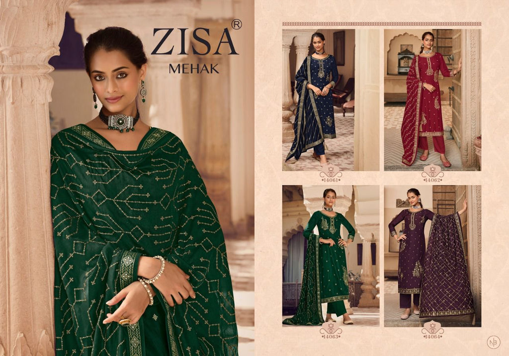 Zisa Mehak Jacquard Embroidery Work Fancy Designer Partywear Salwar Kameez