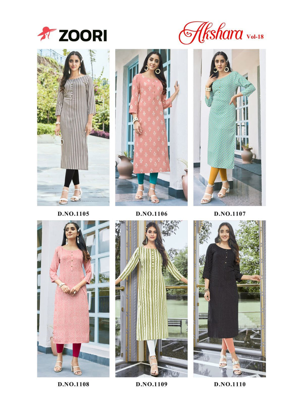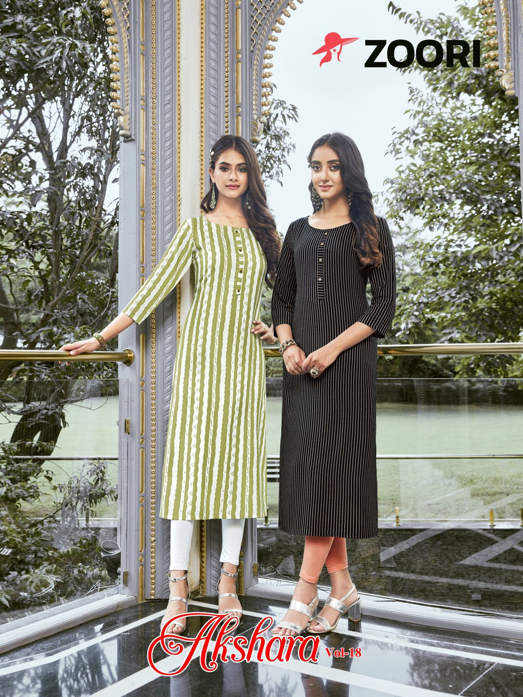 Zoori Akshara Vol 18 Rayon With Printed Work Stylisg Designer Party Wear Fancy Kurti